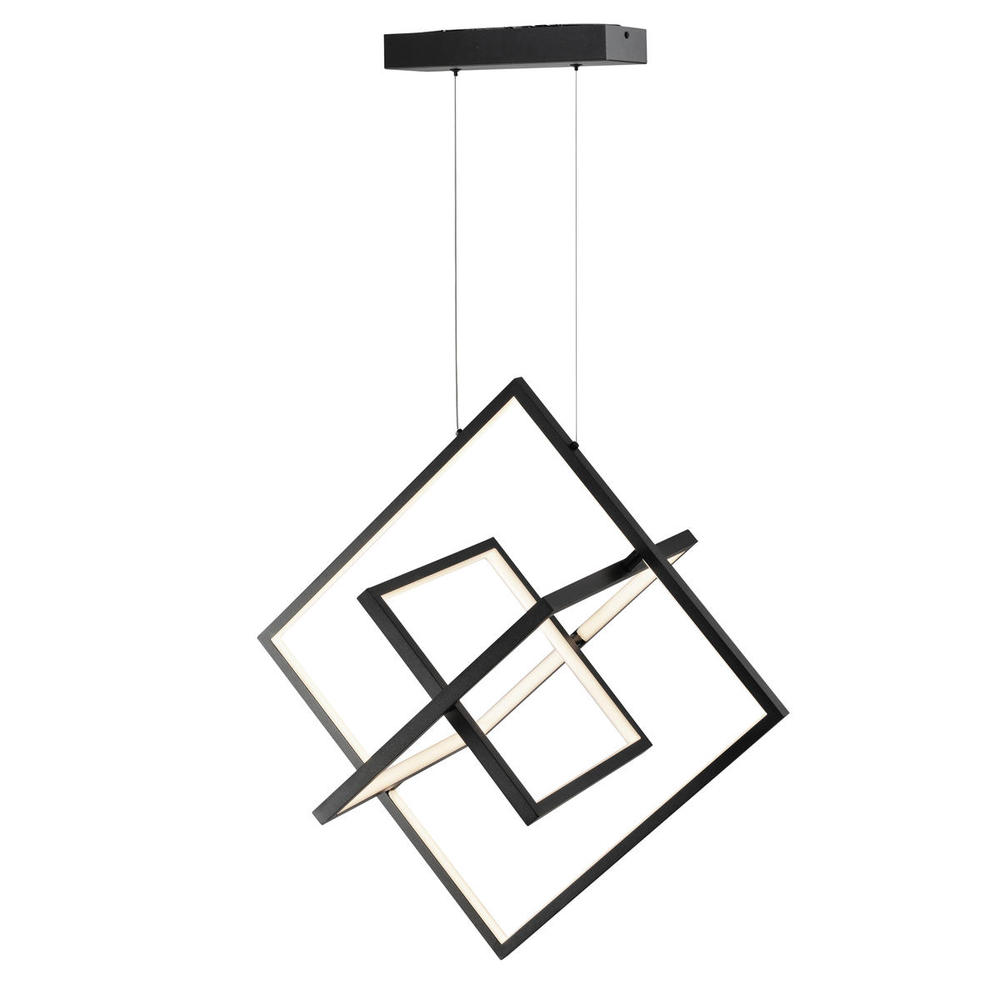 The Geometric "Graymar" pendant is unique because each of the squares can be rotated to your desired position. The frame and canopy are finished in a semi matte black. Each of the squares is illuminated by bright energy saving LED technology. This pendant almost looks like it is floating since it is suspended by thin aircraft type cables. Definitely a "cool" statement piece.