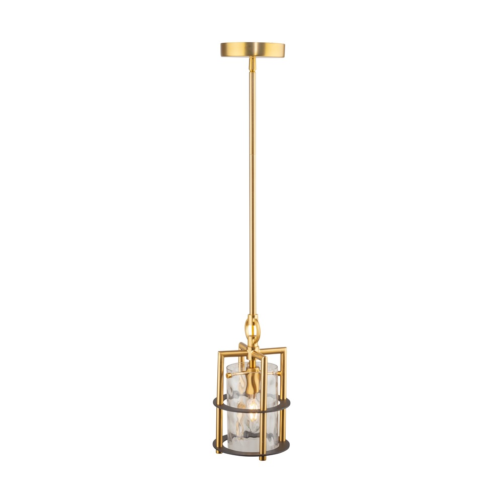 The Buford Collection is a striking ensemble that seamlessly blends elegance and modern design. Its defining features include a brass frame complimented with black rings, creating a contemporary contrast against the timeless appeal of the metal. The thick semi-transparent water glass add opulence and warmth, making these lanterns style chandeliers a sophisticated focal point for any space. Single light pendant shown (height adjustable with rods and built in hangstraight for sloped ceilings).