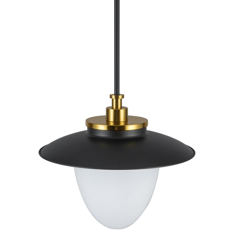 The Dahlia collection pendant designed by the Lighting Pulse, radiates understated charm with its striking black frame and refined brass accents, making it a centerpiece of modern sophistication. Its opulent white glass diffuses a soft, inviting glow, creating a serene ambiance in any space. Thoughtfully crafted with a built-in hang-straight feature, it ensures compatibility with sloped ceilings, effortlessly blending form and function. This model can be mounted as a rod pendant, or as a semi-flushmount light. (Rods are included, allowing you to hang this fixture at your desired height)