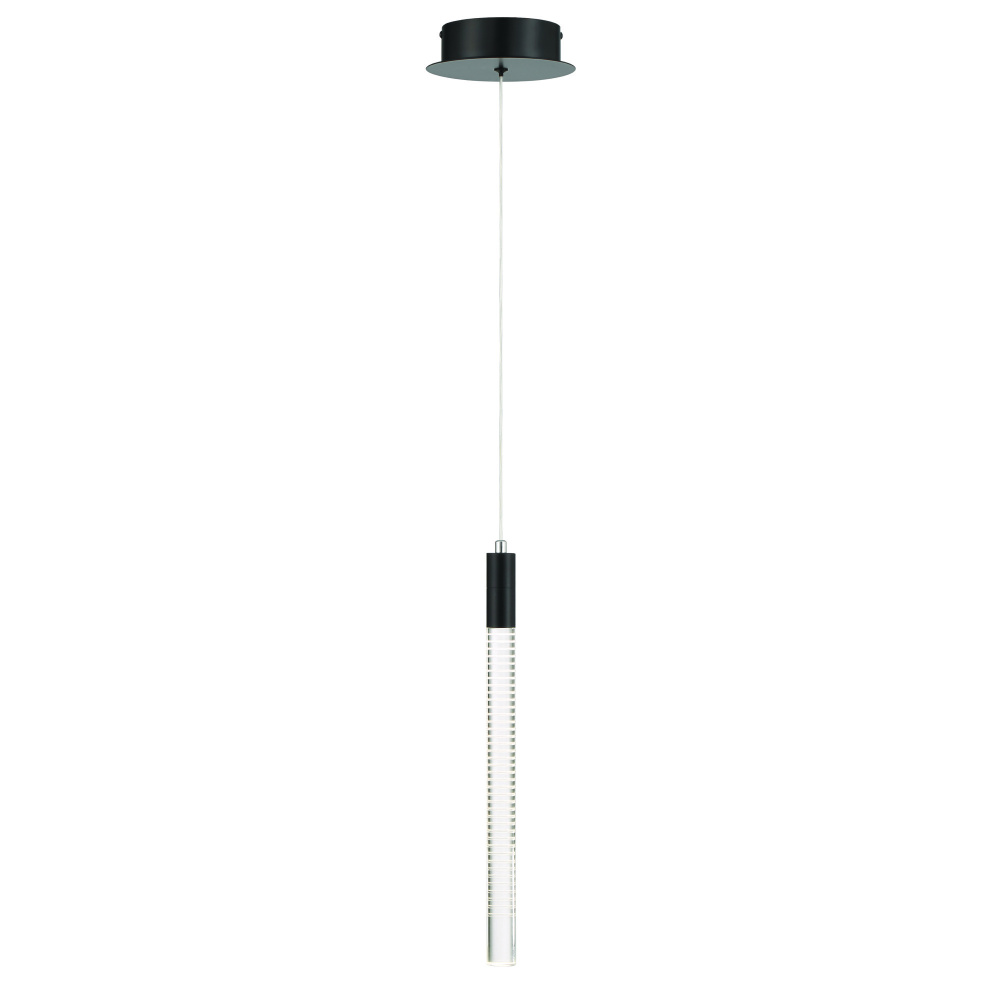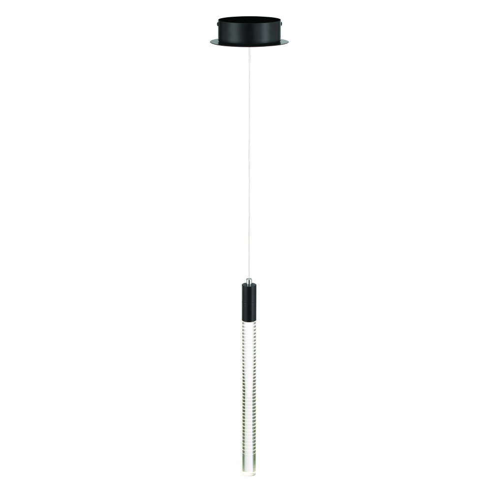 The Celine single pendant is a stunning masterpiece of modern elegance, featuring a black canopy and holders that exude warmth and sophistication. Its clear glass rod, adorned with intricate laser-etched lines, create a mesmerizing play of light and texture. Illuminated by LED technology, this chandelier offers a blend of energy efficiency and brilliance. With easily height-adjustable wires, it adapts seamlessly to any space, making it a breathtaking centerpiece for contemporary interiors. Great for a kitchen island or in multiples over a dining room table.