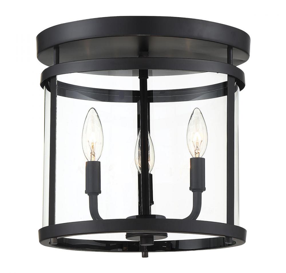 This sleek, cylindrical Penrose 3-light ceiling semi-flush mount from Savoy House is an excellent choice for lovers of stylish modern design. It features clear glass and is finished in bold matte black. Semi-flush mounts can be used on the ceiling of pretty much any interior room, including foyers, hallways, stairways, closets, bathrooms, bedrooms, kitchens and more! Bulbs not included. Try using stylized bulbs like Edison or tubular bulbs for a different look! The matte black finish can be matched with black hardware or mixed with hardware in other finishes. Bring Penrose into rooms of any style, especially transitional or classic, for a big touch of lighting allure. When you choose a Savoy House lighting fixture, you can be certain you've selected a piece that will withstand the test of time.