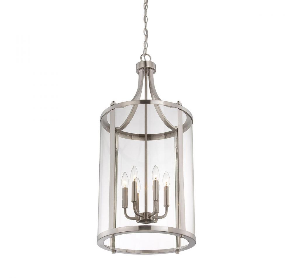 This sleek, cylindrical Penrose 6-light foyer light from Savoy House is an excellent choice for lovers of stylish modern design. It features clear glass and is finished in shining satin nickel. Foyer lights are often used in foyers and entryways, but can also be used in great rooms, kitchens, offices and bedrooms too! Bulbs not included. Try using stylized bulbs for a different look! The satin nickel finish can be matched with nickel hardware or mixed with hardware in other finishes. Bring Penrose into rooms of any style, especially transitional or classic, for a big touch of lighting allure. When you choose a Savoy House lighting fixture, you can be certain you've selected a piece that will withstand the test of time.