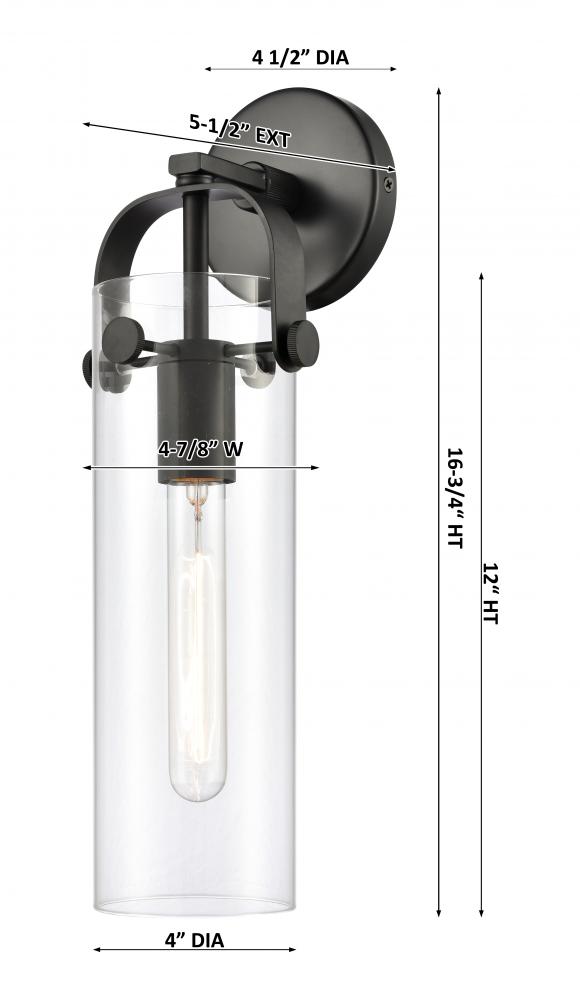 Pilaster - 1 Light - 4 inch Glass - Matte Black - Clear Shade - Sconce