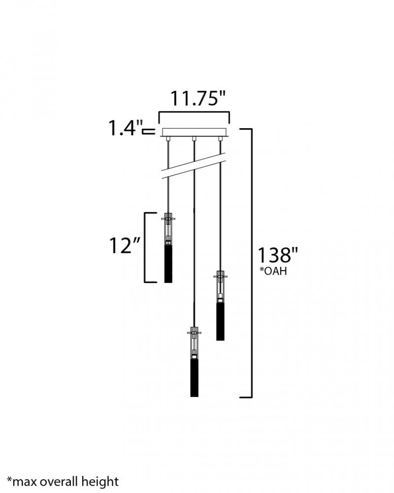 Slender Clear glass tubes sheath a Polished Chrome rod that supports small LED lamps. The glass is etched at a dividing line in the glass to softly diffuse the light. Available in two lengths of glass tube, the pendants are also available in multiple confi