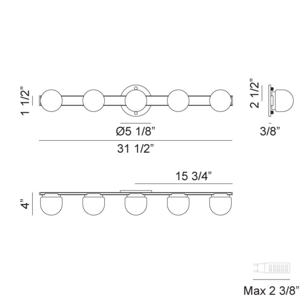 5 LT 17.6"W "PIZZAZ" WALL SCONCE IRON+ALUMINUM-MB-OPAL GLASS G9 LED 5W