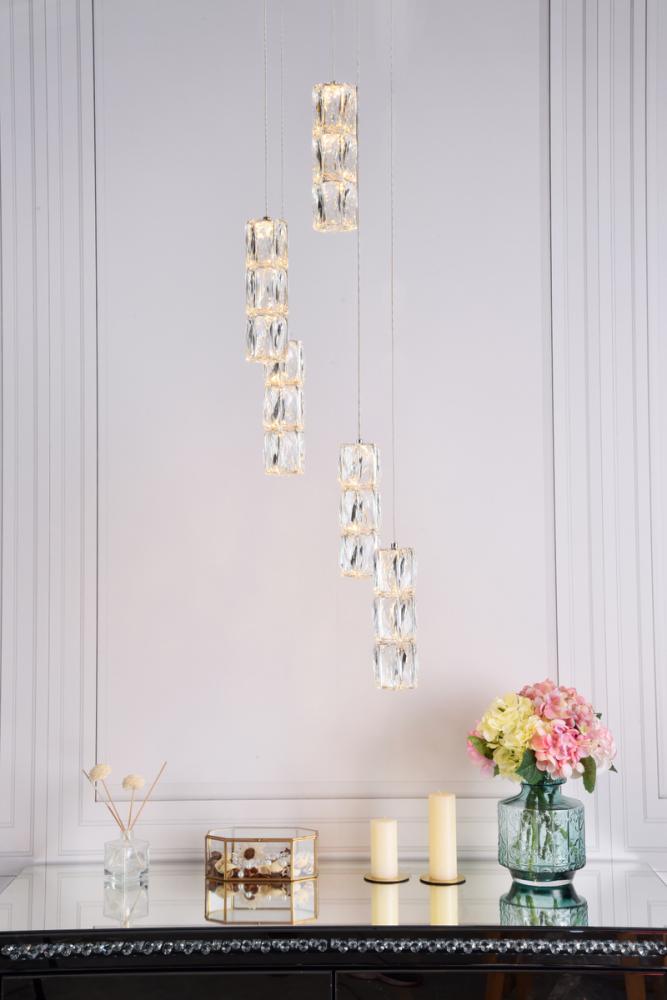 The Polaris collection is the epitome of "cool" in lighting, because each of the fixtures has rectangular, elegant-cut crystals that look like ice cubes, gracefully suspended from a stainless-steel base with a bright chrome finish. Designed for rooms with higher ceilings, these fixtures are definitely stylistic attention-getters.