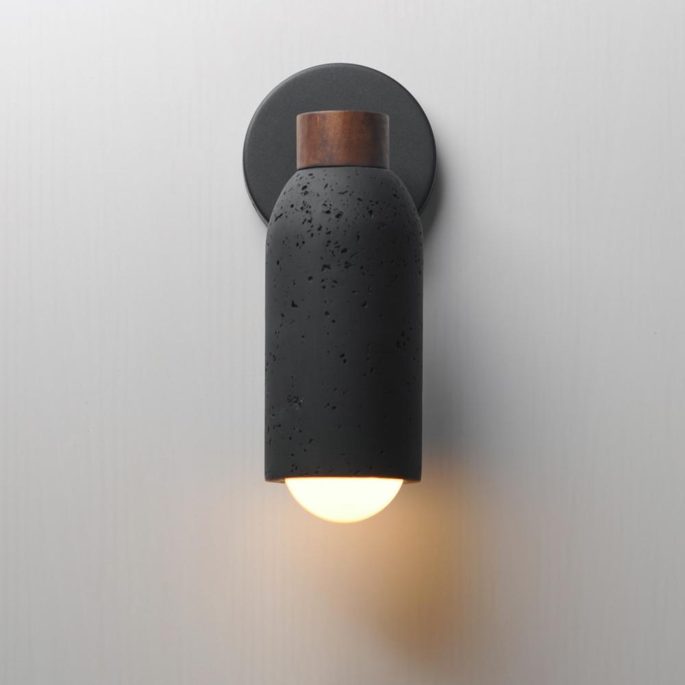 A tribute of natural materials, this collection features carved stone shades in your choice of Travertine or volcanic Lava Rock, paired with coordinating lathed wood bases. The Travertine composition showcases White Oak wood and Ecru white metal accents, w