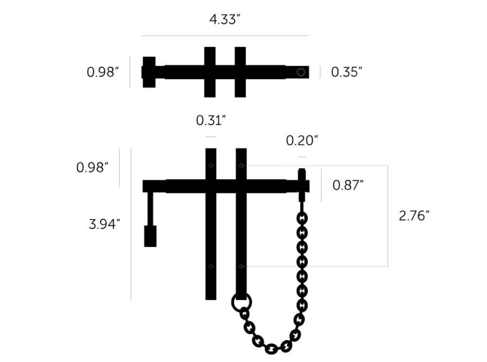 A precious bar made from solid brass and designed to keep all your precious belongings safe. This precious bar consists of two vertical solid brass pulls and a solid brass horizontal fixing bar. The fixing bar features our signature linear-knurl pattern and is attached with an elegant brass fashion chain. The fixing bar can be secured in place with our solid brass padlock, with ‘B+P’ logo etched into it. They work great on cabinet doors, free-standing furniture, console units and just about anything that has two side-by-side openable doors.