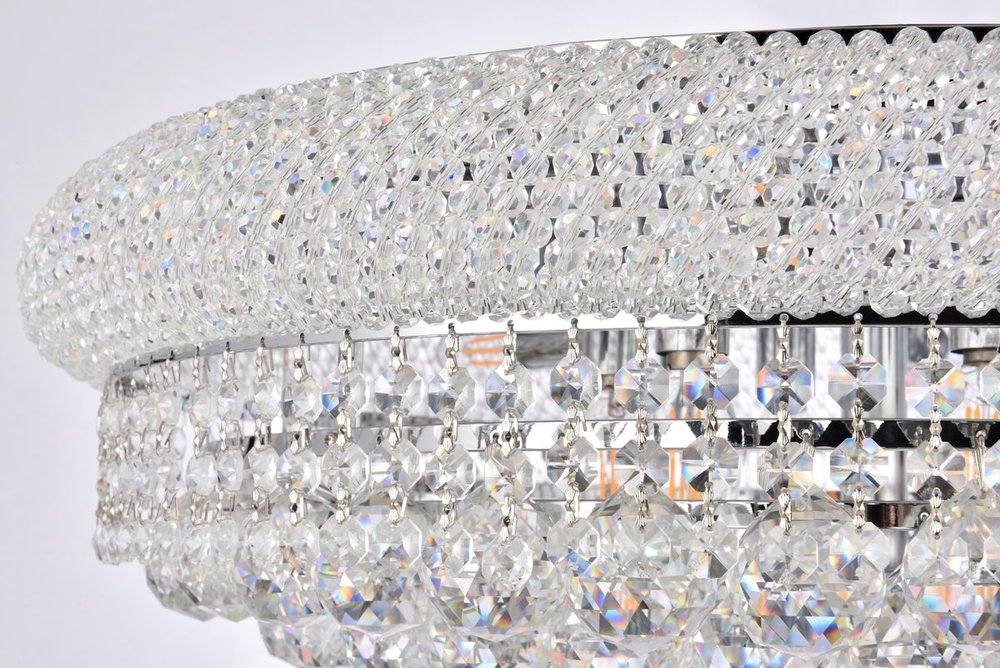 Primo flush-mount fixtures come in finishes of brilliant chrome or gold, which are refracted in the clear crystals