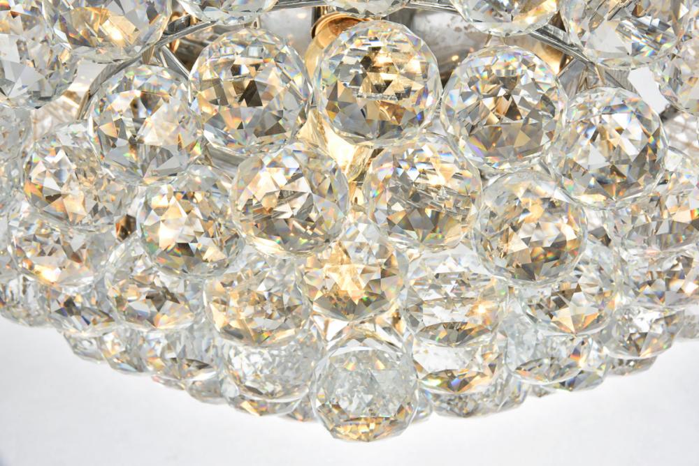 Primo flush-mount fixtures come in finishes of brilliant chrome or gold, which are refracted in the clear crystals