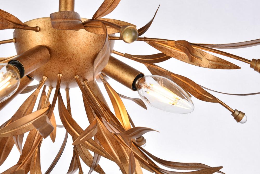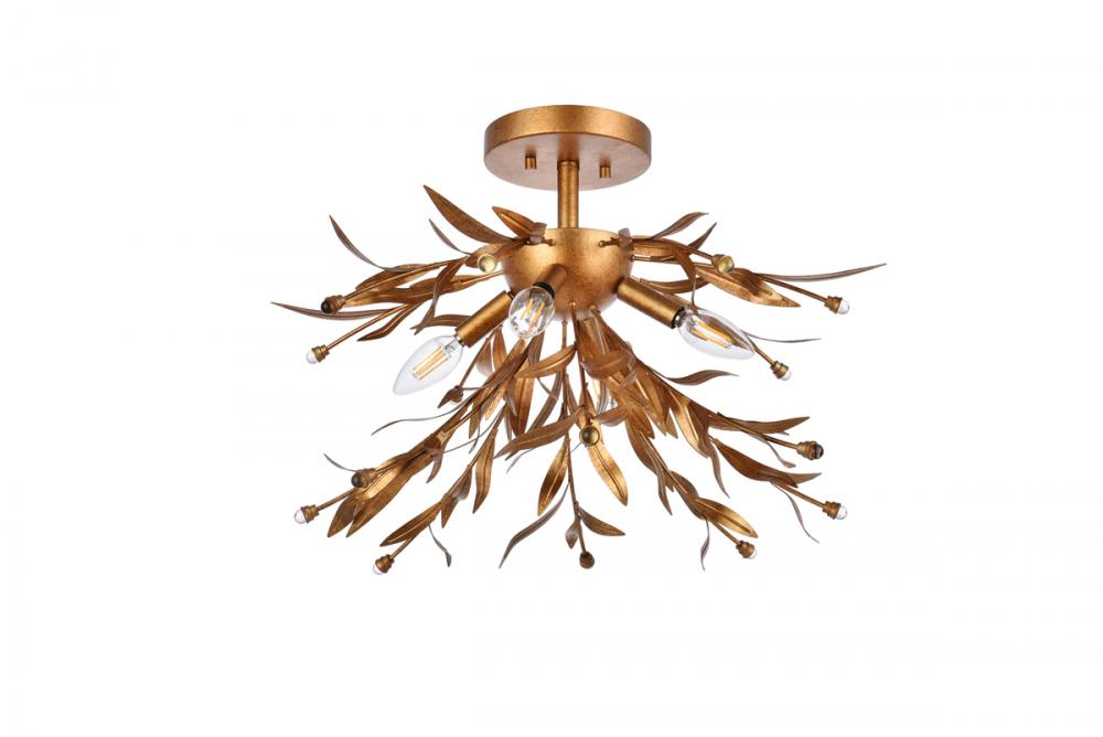 This 4 light semi-flush mount is sure to add a nice focal point in your space. The circular canopy, small downrod, and sockets are made from metal of your choice of finish. It features several leaf branches tipped with clear crystal bead. This fixture takes four 40W bulbs, (not included) that wash your space in a bright glow. It's compatible with a dimmer switch, so you'll always have the right amount of light no matter the time of day.