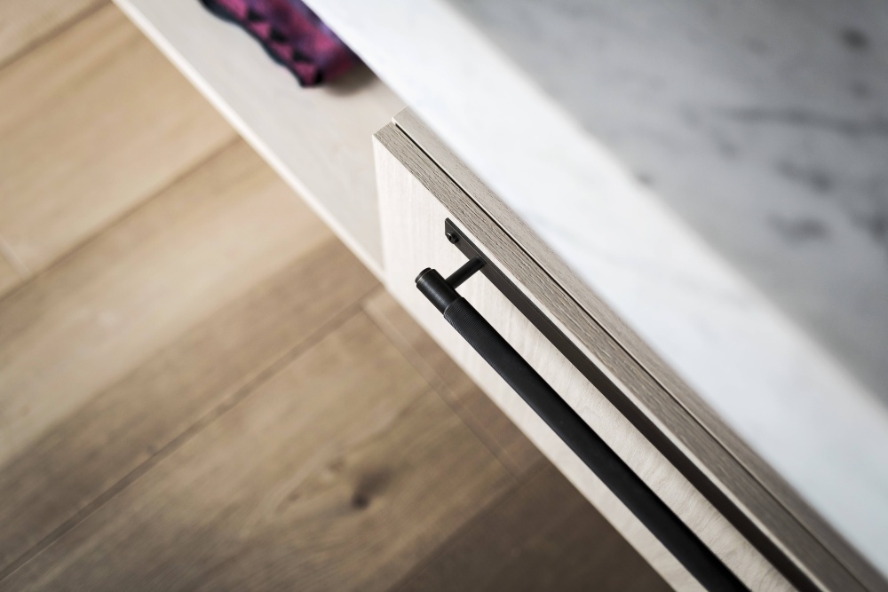 A pull bar made from solid smoked bronze. This pull bar features our signature, diamond-cut, cross-knurl pattern and is refined by hand. The pull bar includes a rectangular backplate made from solid smoked bronze and finished with smoked bronze coin screws. They work great on cabinet doors, wardrobe drawers, cupboards, kitchen units and just about anything that can open. lease note: SMOKED BRONZE is a 'living finish'. This means, the more you use this smoked bronze product the more the base brass metal will show through. In short, this product will age beautifully with you.