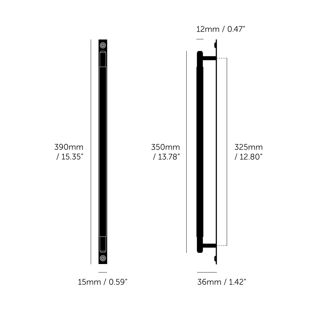 A pull bar made from solid anodised black metal. This pull bar features our signature, diamond-cut, linear-knurl pattern and is refined by hand. The pull bar includes a rectangular backplate made from solid black metal and finished with black metal torx screws. They work great on cabinet doors, wardrobe drawers, cupboards, kitchen units and just about anything that can open.