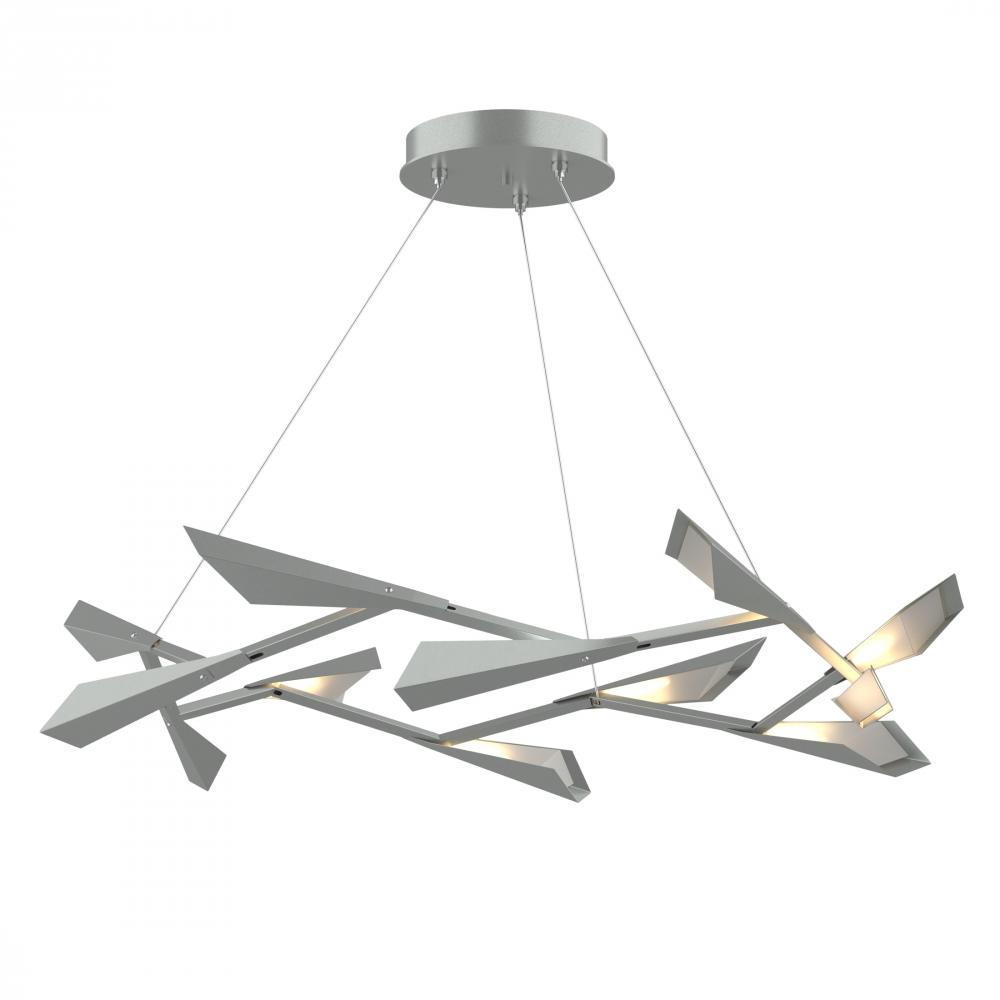 The Quill links together unique geometry in a circular pendant form reminiscent of a crown of laurels. Adjusting the cables allows for the pendant to hang on a level plane or on angle. Available as a single or two-tone fixture: Choose a base item finish for the body and an accent finish for the metal shades.