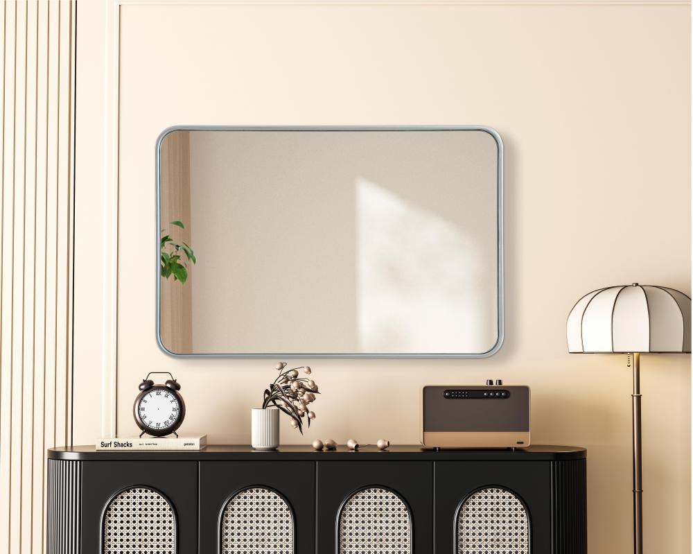 Elevate your home decor with this versatile wall mirror that combines functionality and modern design. Made from a sturdy combination of MDF, iron, and reflective mirror glass, this piece is built to last while adding a polished finish to any room. The extended depth of the frame not only provides a striking dimensional effect but also ensures the mirror’s presence commands attention as a focal point. Whether you're decorating a bedroom, bathroom, or entryway, its diverse shapes—including rectangle and square—offer plenty of options to suit your style. The hand-painted black, brass, or silver finish brings a subtle yet striking touch, complemented by rounded corners for a smooth and contemporary aesthetic. with four metal inset hangers, it's ready to hang vertically or horizontally, ensuring flexibility for any layout. Available in multiple sizes, this mirror is a statement piece that blends seamlessly into both modern and classic spaces.
