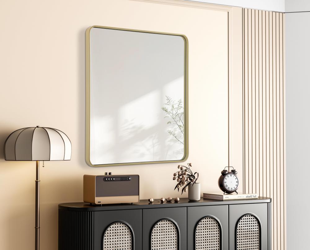 Elevate your home decor with this versatile wall mirror that combines functionality and modern design. Made from a sturdy combination of MDF, iron, and reflective mirror glass, this piece is built to last while adding a polished finish to any room. The extended depth of the frame not only provides a striking dimensional effect but also ensures the mirror’s presence commands attention as a focal point. Whether you're decorating a bedroom, bathroom, or entryway, its diverse shapes—including rectangle and square—offer plenty of options to suit your style. The hand-painted black, brass, or silver finish brings a subtle yet striking touch, complemented by rounded corners for a smooth and contemporary aesthetic. with four metal inset hangers, it's ready to hang vertically or horizontally, ensuring flexibility for any layout. Available in multiple sizes, this mirror is a statement piece that blends seamlessly into both modern and classic spaces.