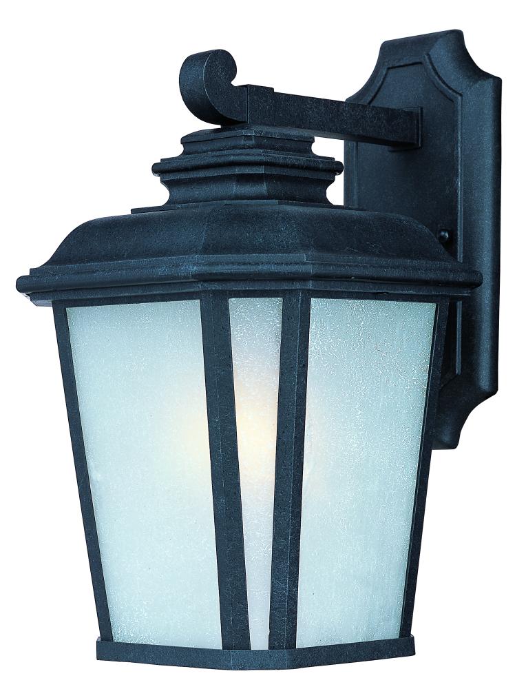 A classical, traditional style finished in a rustic Black Oxide finish with Weathered Frost glass is sure to add elegance to your home's exterior. Available in both incandescent and fluorescent versions with an source to consider.