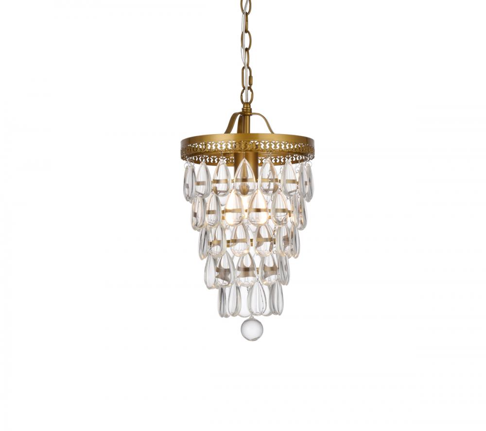 This one light pendant is sure to look great in your space. The circular canopy, hanging chain, and socket are made from metal of your choice of finish. It features a cascading tiers of crystal drops that encases one medium socket. This fixture takes one 40W bulb, (not included) that wash your space in a bright glow. It's compatible with a dimmer switch, so you'll always have the right amount of light no matter the time of day.