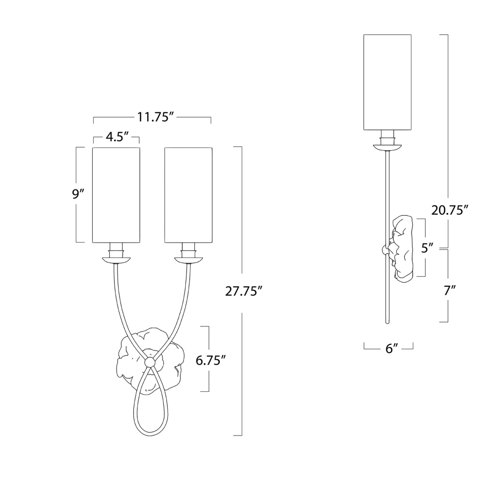 Regina Andrew Domonique Sconce Double; Dimensions 11.75W x 27.75H x 6D; Uses one maximum 40 Watt E12 Base Bulb (Not Included)