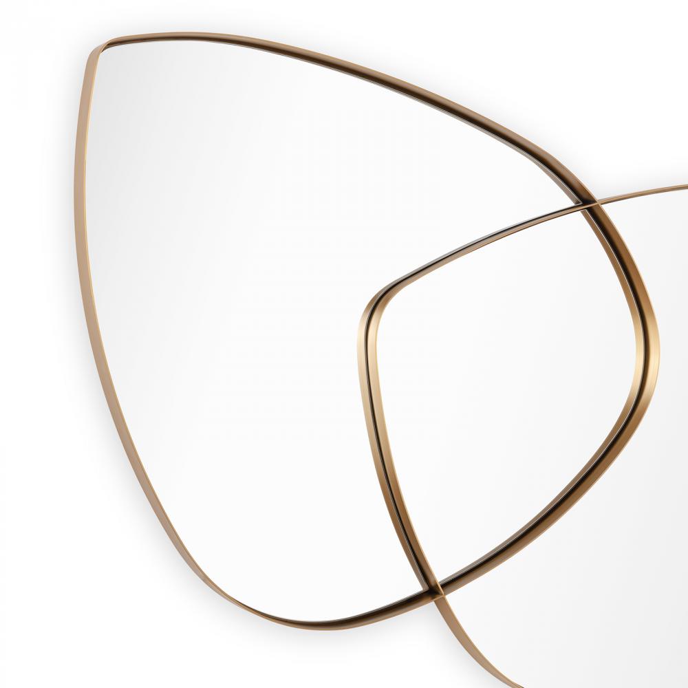 The unique design of our Harmony Mirror catches the eye—especially with its natural brass finish. Its bold frame and overlapping shapes adds an edgy touch to any room.