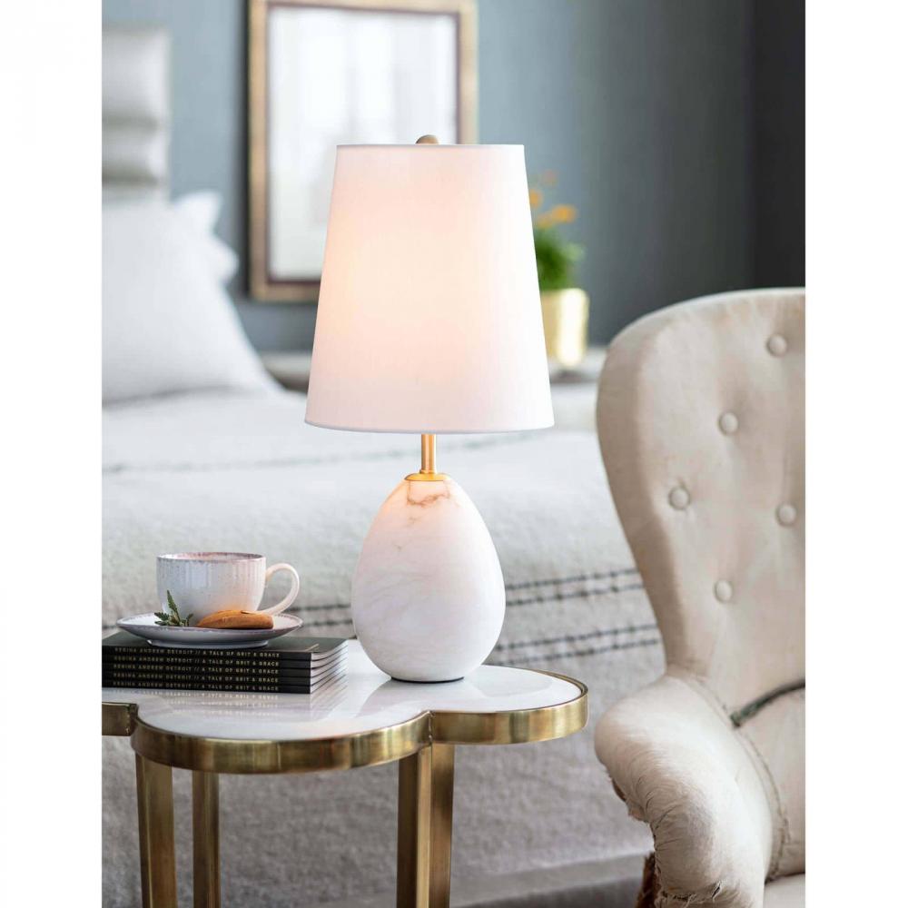 Jared Mini Lamp transcends trends with its classic yet modern style. An oval alabaster base is beautifully veined for a sophisticated, organic look, and its elongated shade adds depth to its silhouette. Place on a buffet or a sideboard for extra illuminati