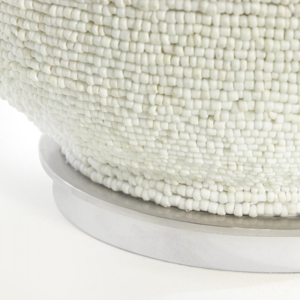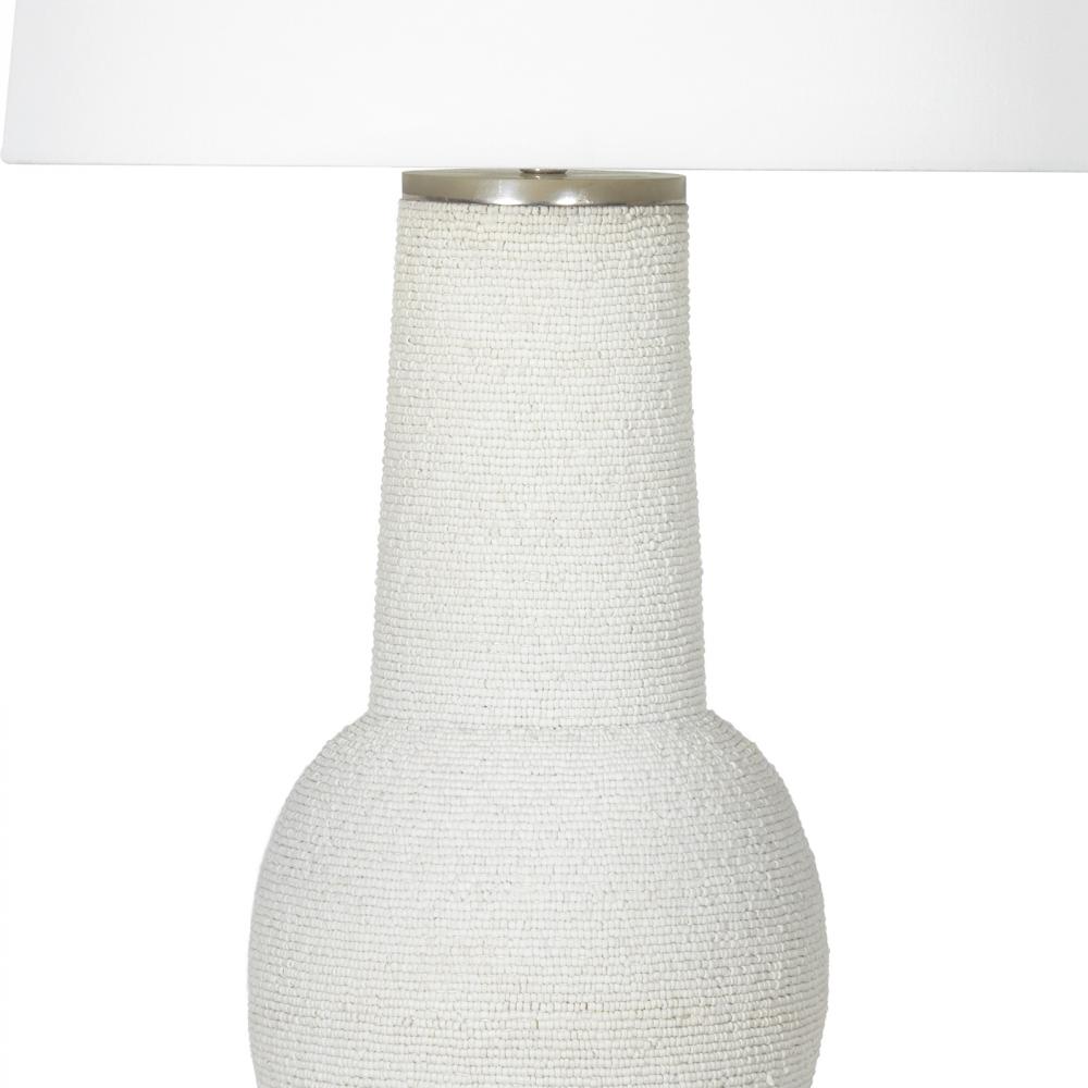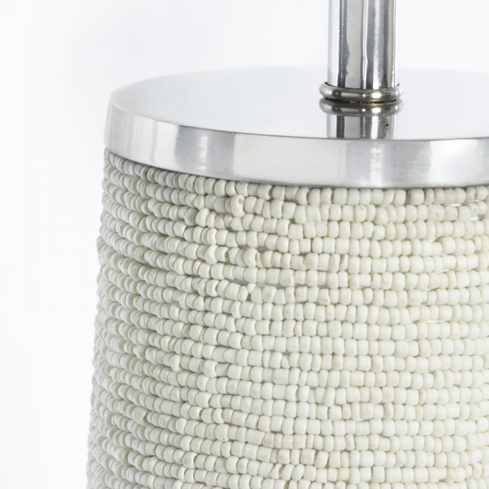 Chic yet playful, the Lizza Table Lamp's neutral palette and textured surface will provide your interior with a quality modern piece. Meticulously strung matte white beads wrap around its base, adding striking details that will elevate any decor style. Place the Lizza on a nightstand or an end table in your living room for a unique accent.