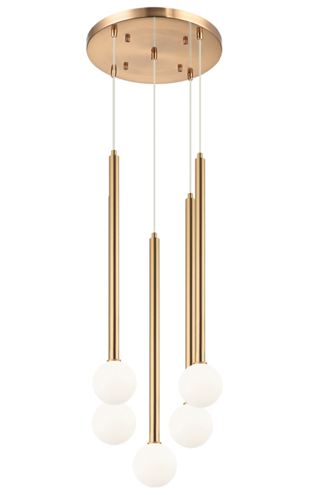 Inspired by the Reign Series - designed with cylinders reminiscent of a wind chime, the Reigndrop also comes with built in diversity. It is a G9 bulb that includes a mix and match option of frosted acrylic lens cap, opal glass globe and metal disc to cap it off. The fixture comes with all pieces to allow the look to be varied on an ongoing basis to spark creativity. This bold collection is available in 2 finishes: Aged Gold Brass, and Matte Black and will be a great addition to any room.