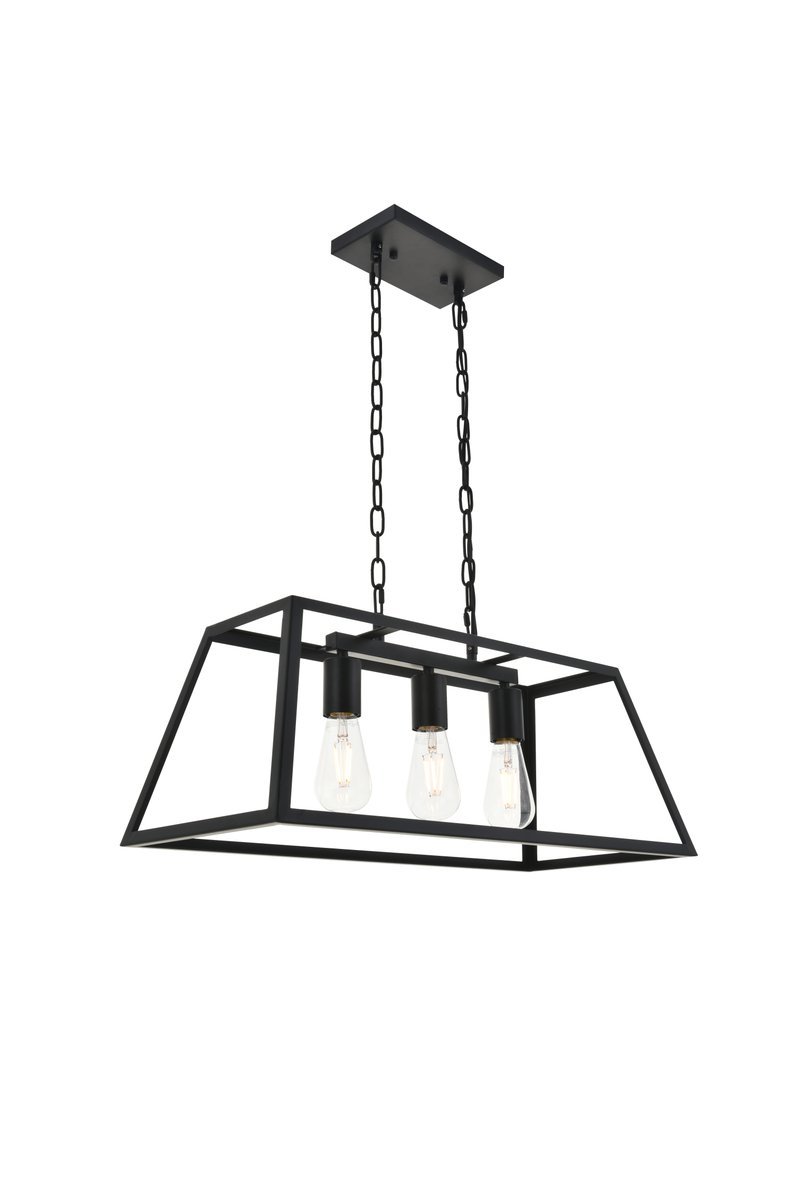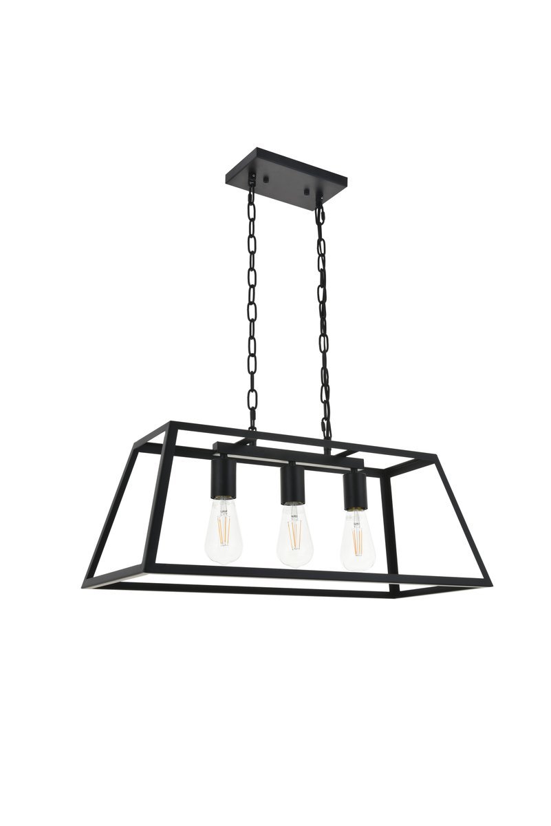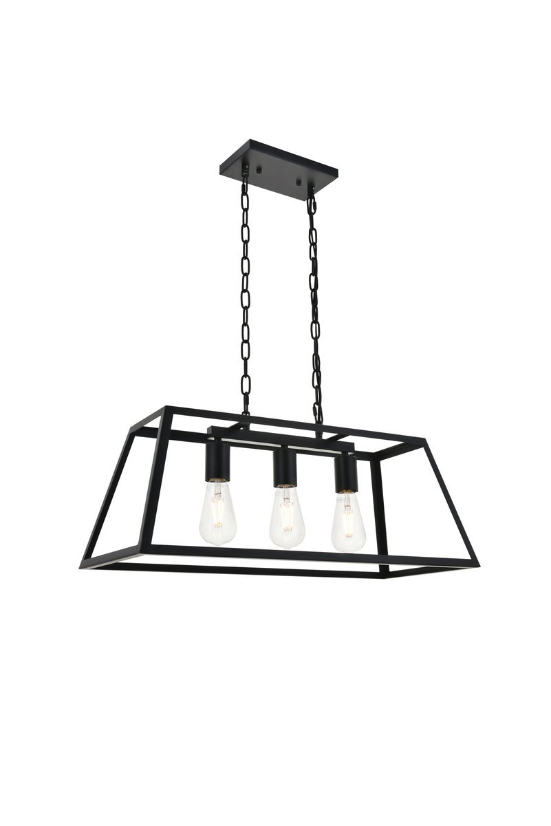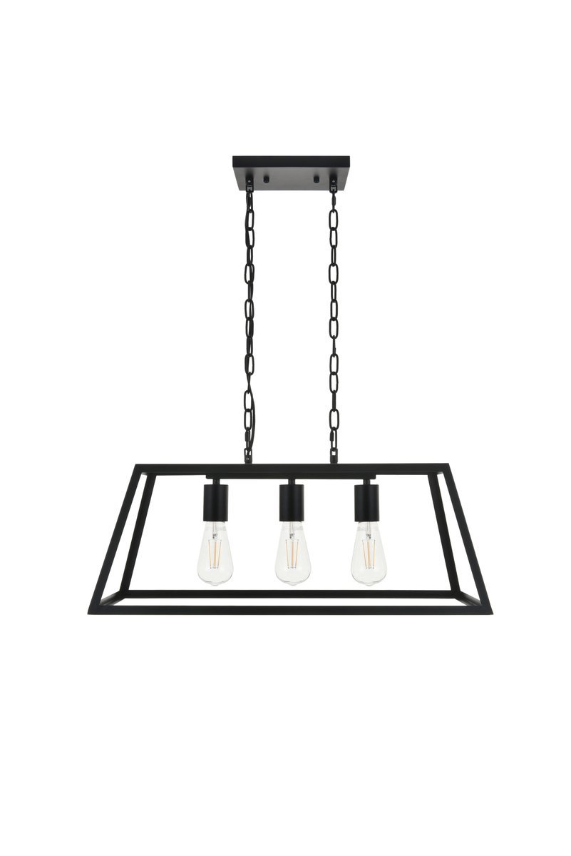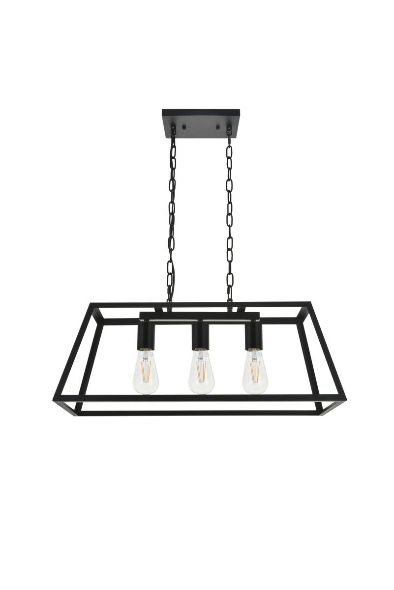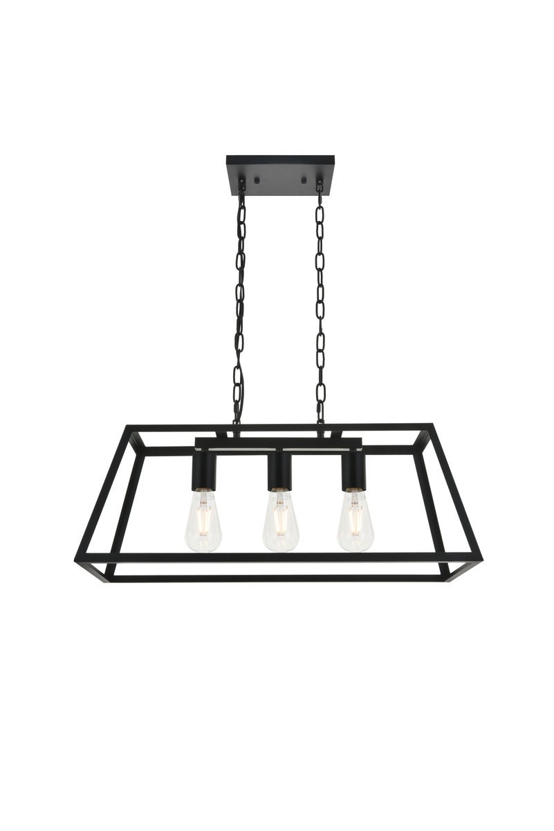 Modern black finish 3-light pendant with an open geometric frame