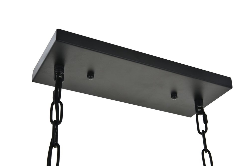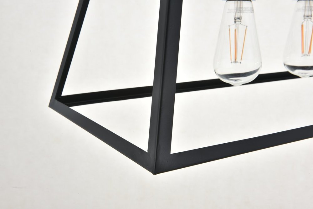 Modern two-toned brass and black finish 4-light pendant with an open geometric frame