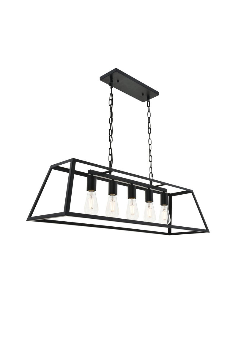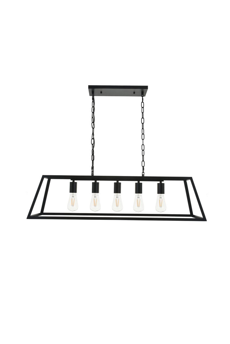 Modern black finish 5-light pendant with an open geometric frame