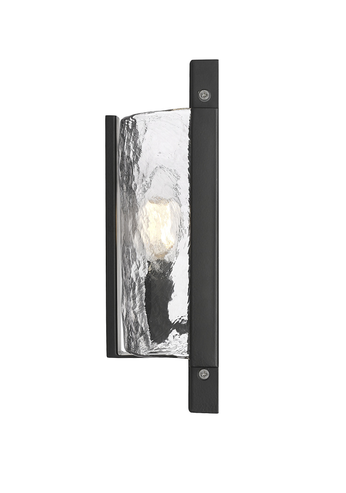 Clear hammered glass panels are the sparking stars of the Rezi Family. Featuring modern hardware supporting an understated minimalist framework, these fixtures are finished in matte black and are available as 1-light sconce and 3- or 4-light chandeliers. The stunning textured glass creates a glistening lighting effect for subtle and diffused illumination. Meticulously crafted, these fixtures are naturally inspired works of art that will enhance any interior space from entryway to dining room.