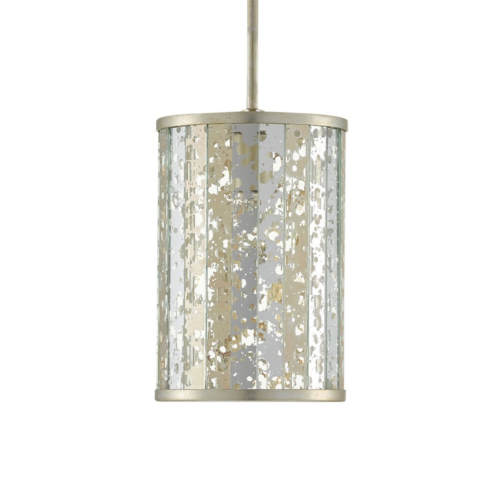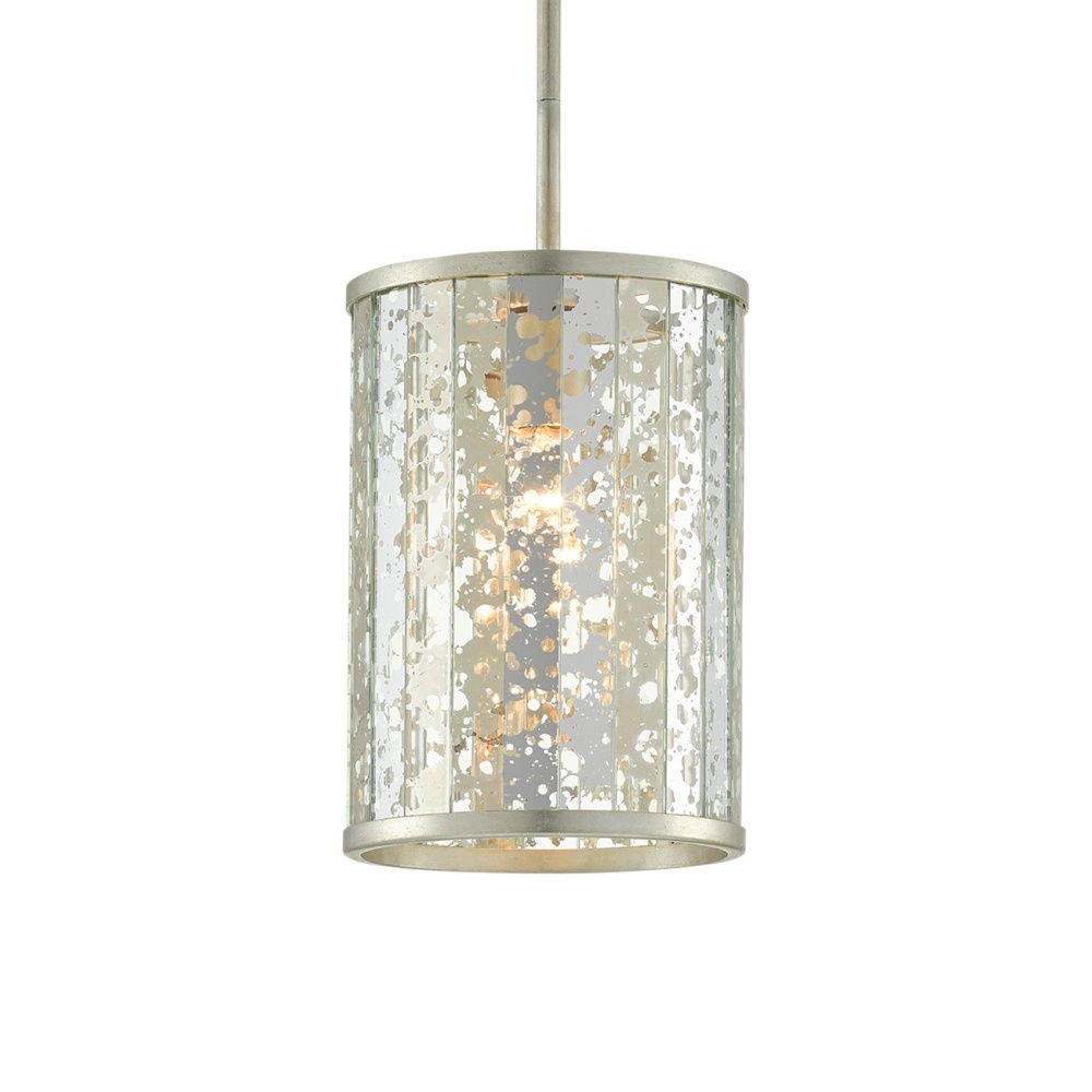 The Riddle Pendant is made of wrought iron in a silver leaf finish that clasps thin panes of mottled mirror to create a luminous shade. The simple silhouette of the silver pendant presents a strong character and a modern style. The overall height, which includes an extension rod, is 50 inches, making this a wonderful choice for a kitchen or hallway. Adjustable from 18.75" to 60.75" with use of included chain/rod kit/cable. If your space calls for a longer drop, additional chain/rods/cable is available for purchase.