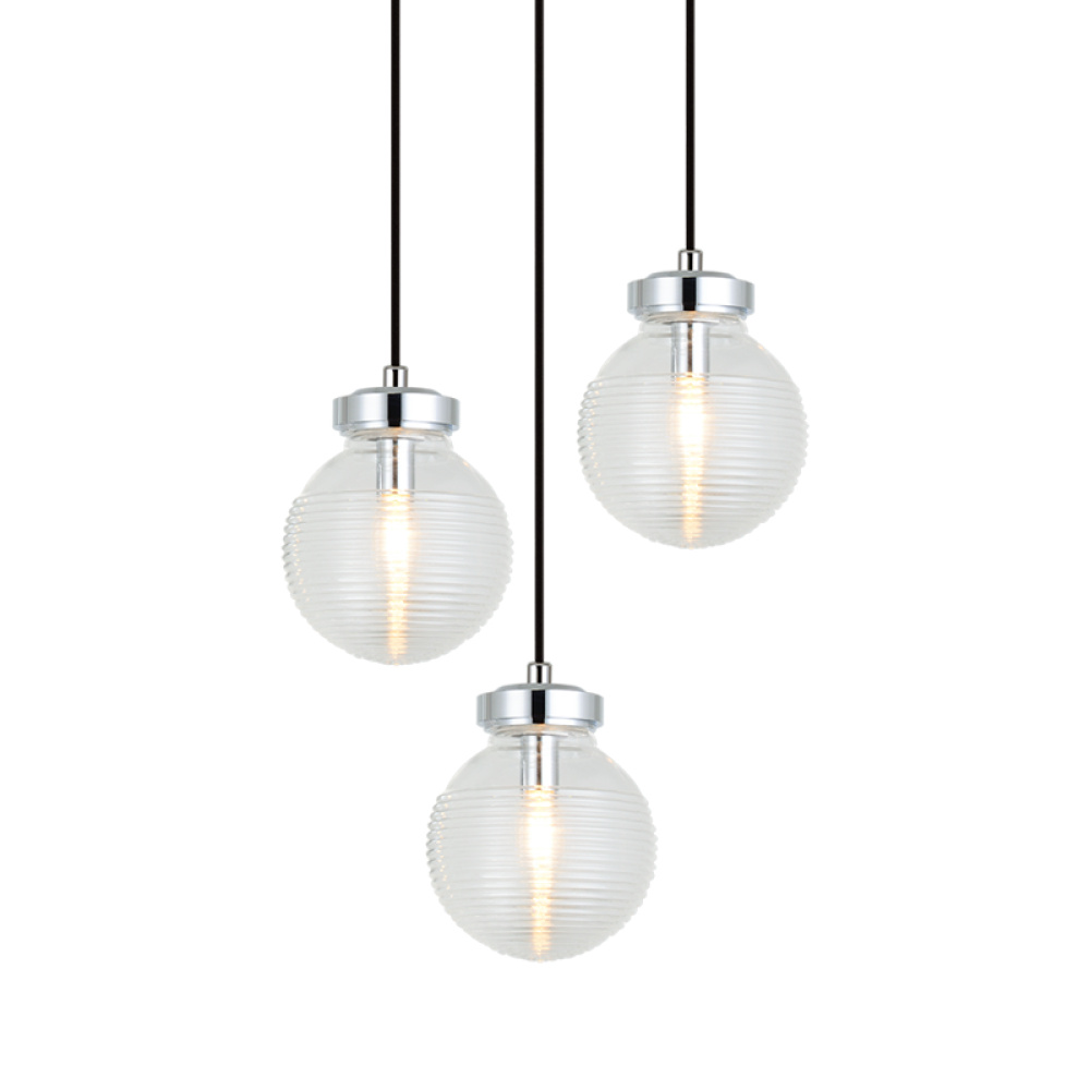 The Ridge collection is designed with ribbed glass globes that create a harmonious century-old feel. Gorgeous and stylish, comes in a single pendant and one light, two light, three light or four light wall sconce option. Matte Black or Chrome finishes.