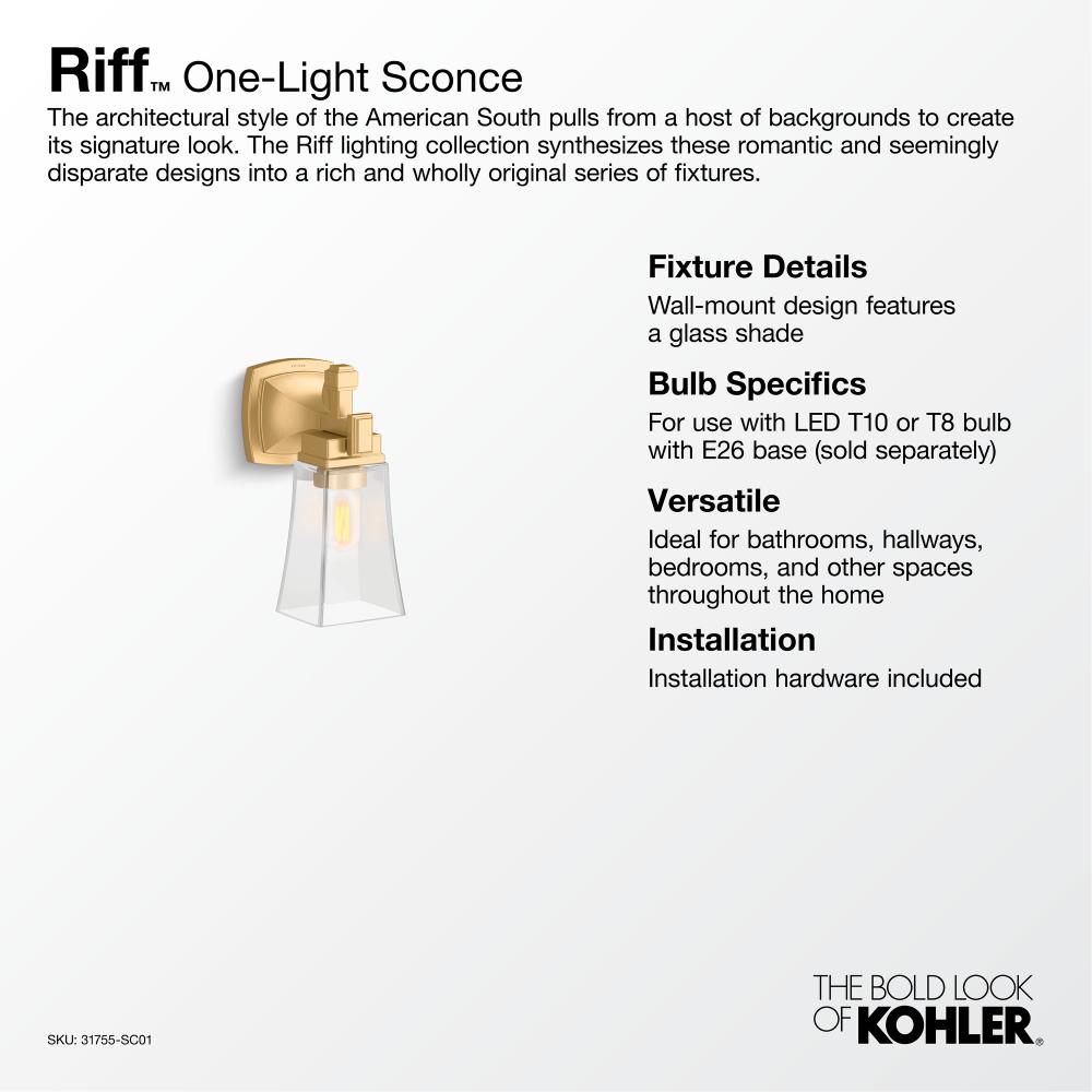 Inspired by the French and Spanish architecture of the historical American South, Riff collection lighting offers a contemporary interpretation of traditional Southern design. Distinct with square lines and bell-shaped shades, the collection's sconces, flush-mounts, and chandeliers will enrich your home decor with a timeless yet modern feel. The perfect blend of high style and thoughtful functionality, these lighting fixtures were designed to coordinate with the KOHLER Riff faucet collection.