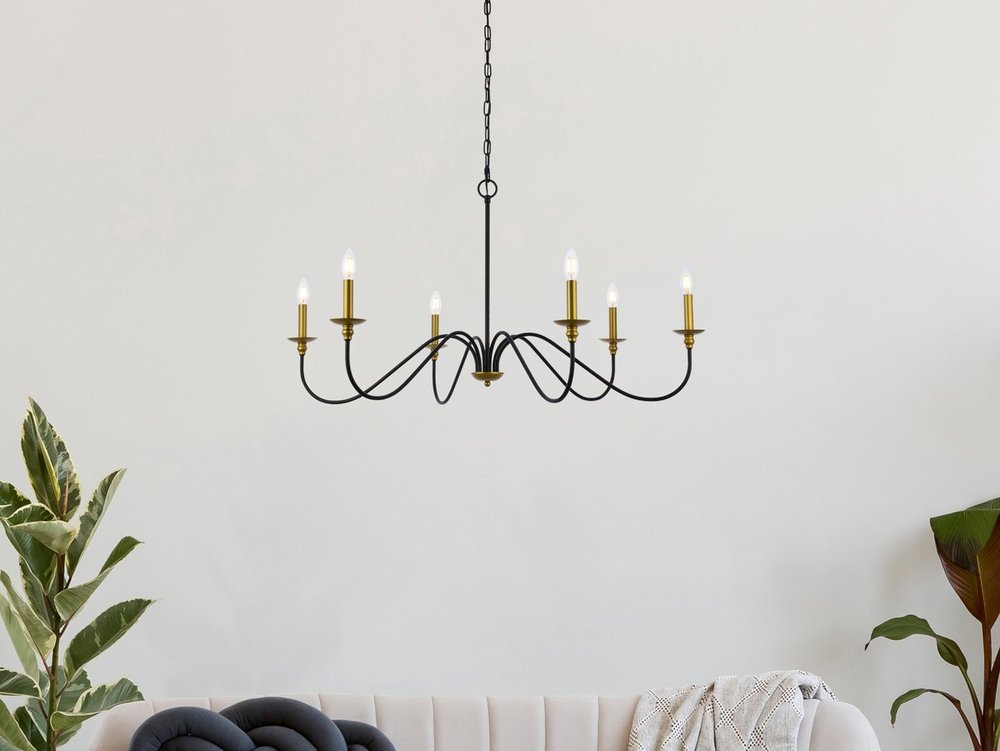 Requires 6 e12 candelabra base max 40 watt bulbs - not included