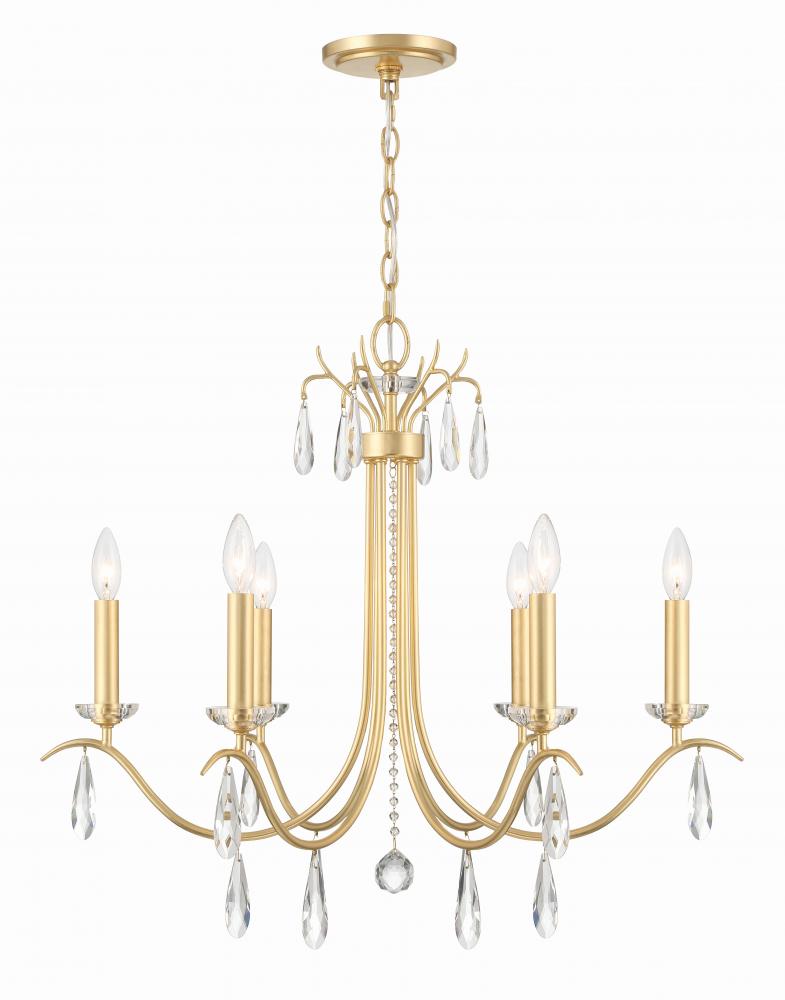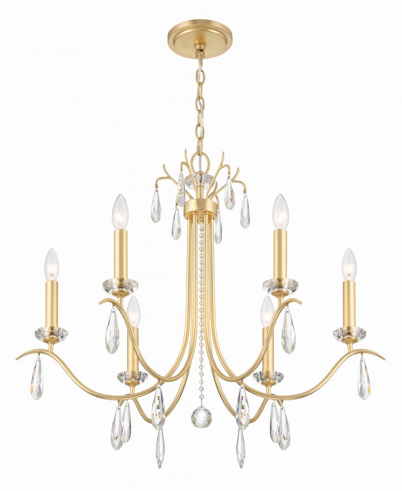 This Rollins Drum Chandelier is now available without its classic shade, offering a more open and airy aesthetic. The Rollins drum chandelier is a design masterpiece, effortlessly adaptable to various settings seamlessly fitting into both traditional and modern aesthetics. Its Antique Gold finish beautifully complements a large white round silk shade. However, the new shadeless option reveals the chandelier's organic inner metal frame, with sweeping arms and elongated crystal drops.