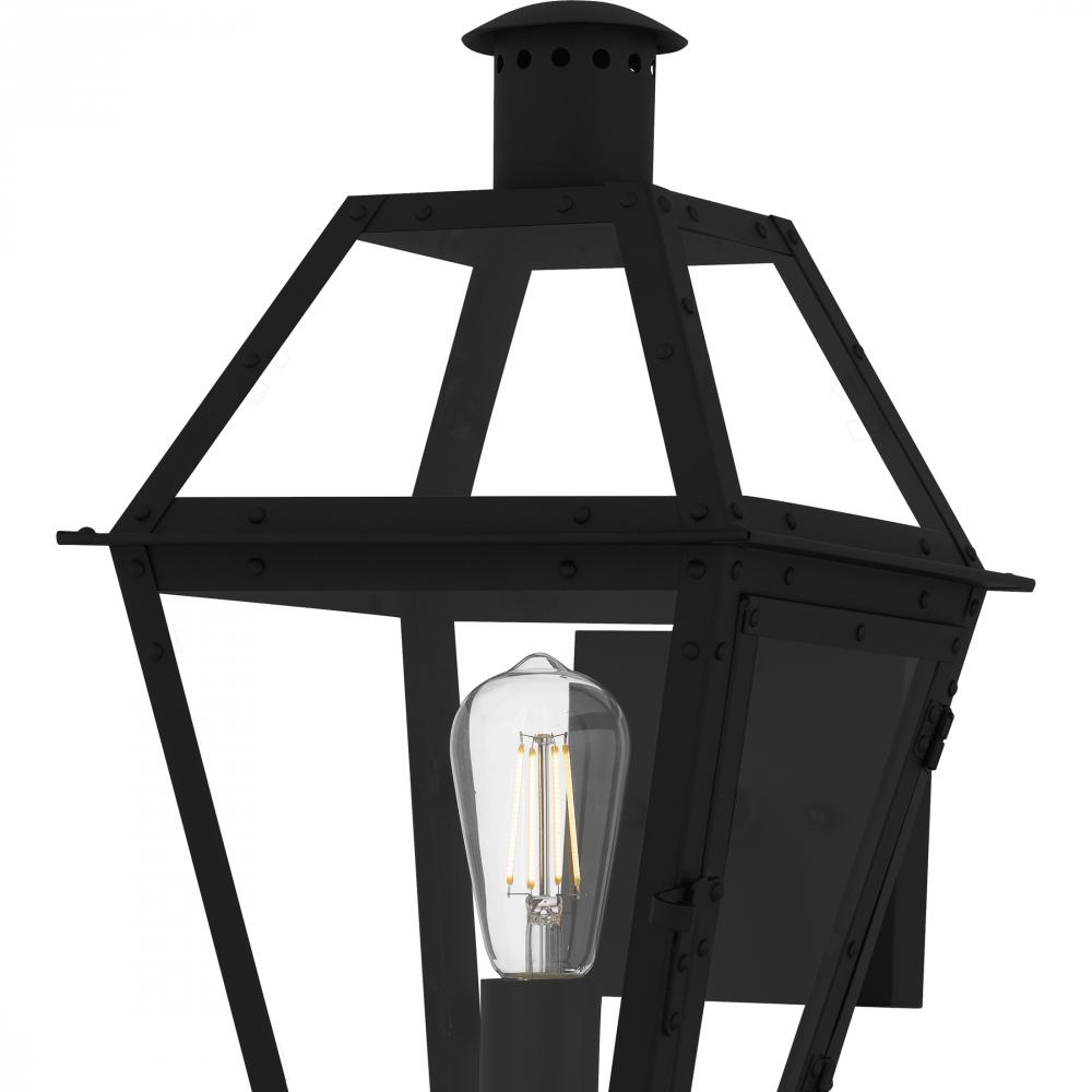 The Rue De Royal outdoor lantern collection offers the charm of a historic gas lantern with the ease of electric lighting. This lantern features a hand-riveted metal frame reminiscent of an antique gas lantern, complete with a fully functioning door for