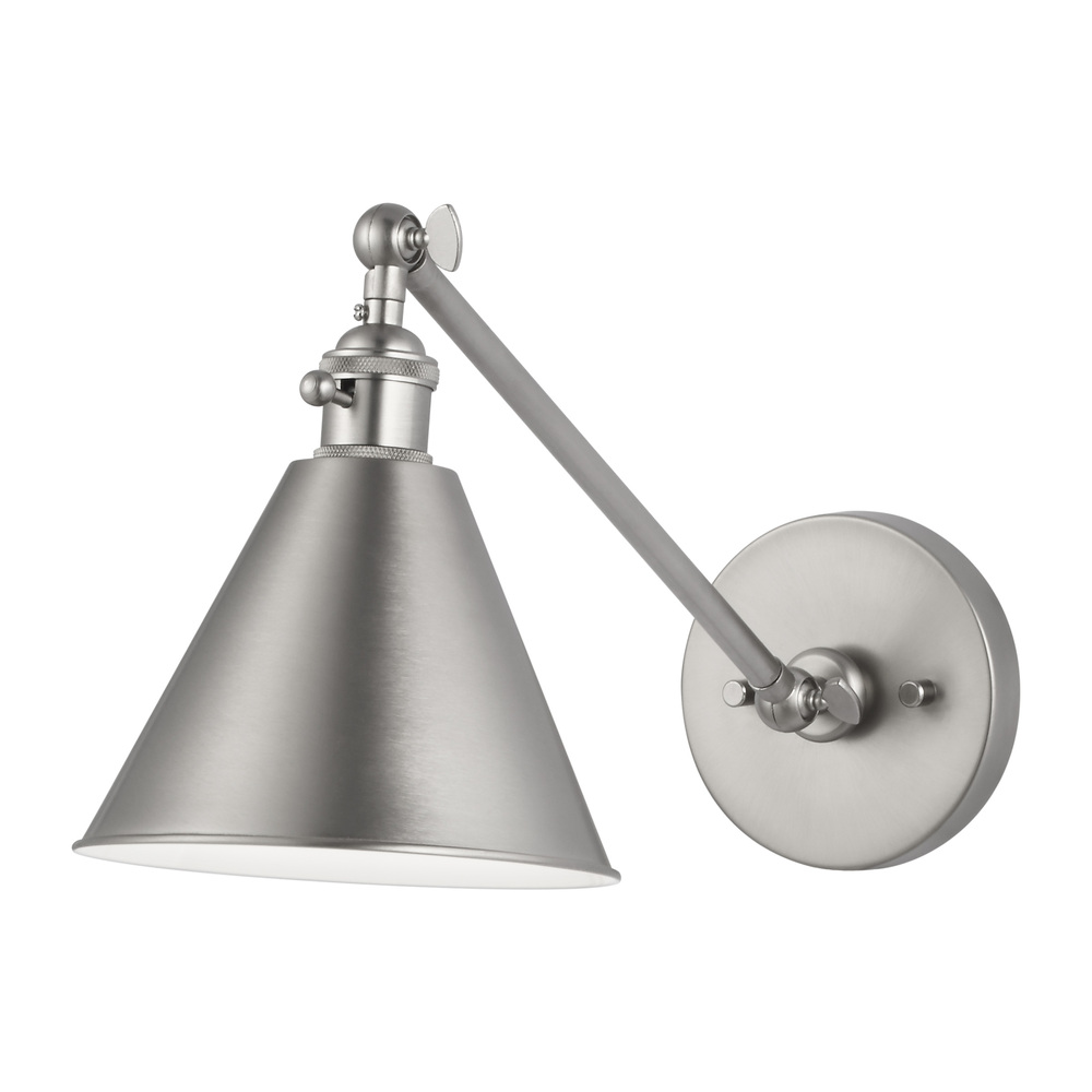 The Salem one light wall sconce in brushed nickel offers shadow-free lighting in your powder room, spa, or master bath room.