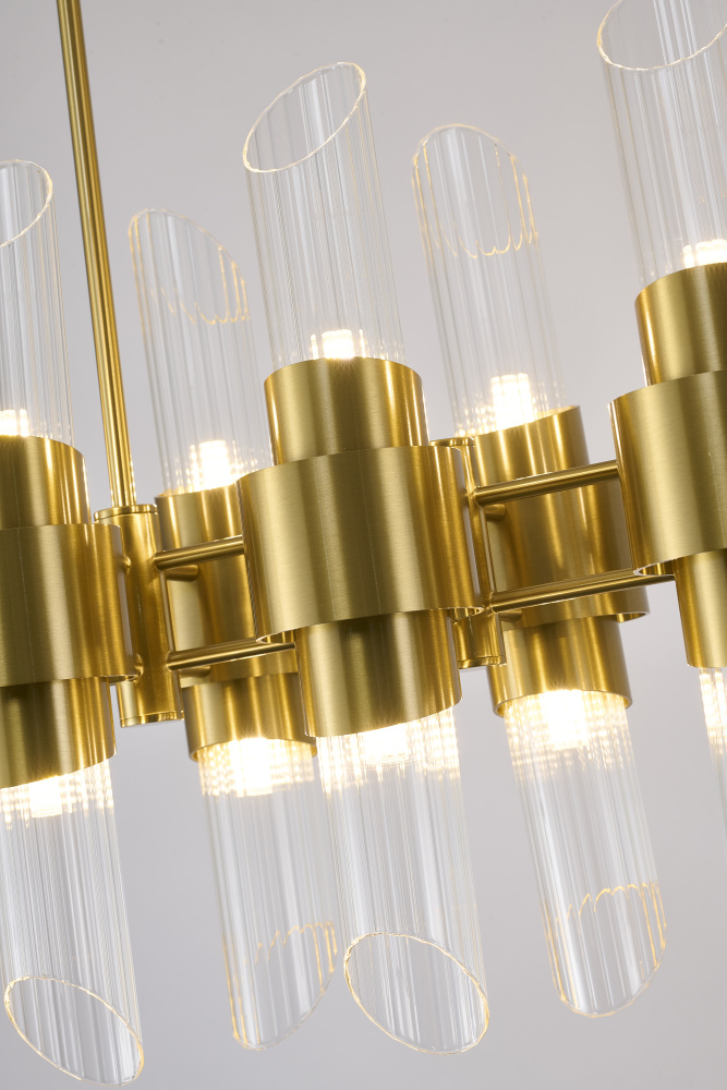 20-Light Satin Brass Iron Chandelier With Glass Shades