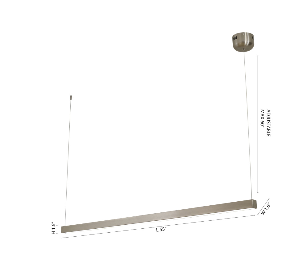 This LED chandelier is a satin nickel metal linear stick LED chandelier. It comes with white acrylic diffuser. The LED color temperature for this LED chandelier is 3000K/4000K/5000K.