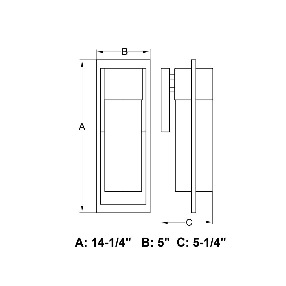 5-in W x 14.25-in H x 5.25-in D with 5-in W x 6-in H backplate