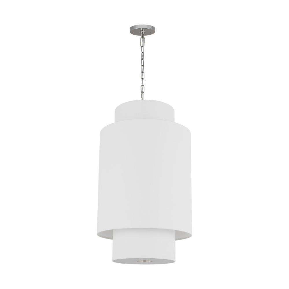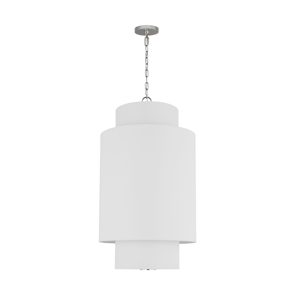 Inspired by kate spade new york whimsical geometry and playful lines, Sawyer has a striking silhouette with graphically taped shades. The Sawyer is a wide playful hanging shade with arched lines and wide, graphically taped shades. This simple and graphic chandelier would be great over a dining table or nook, as well as in a living room scenario.