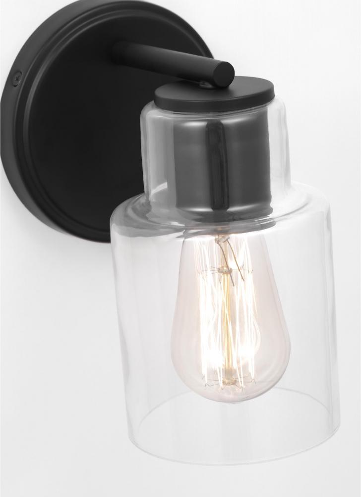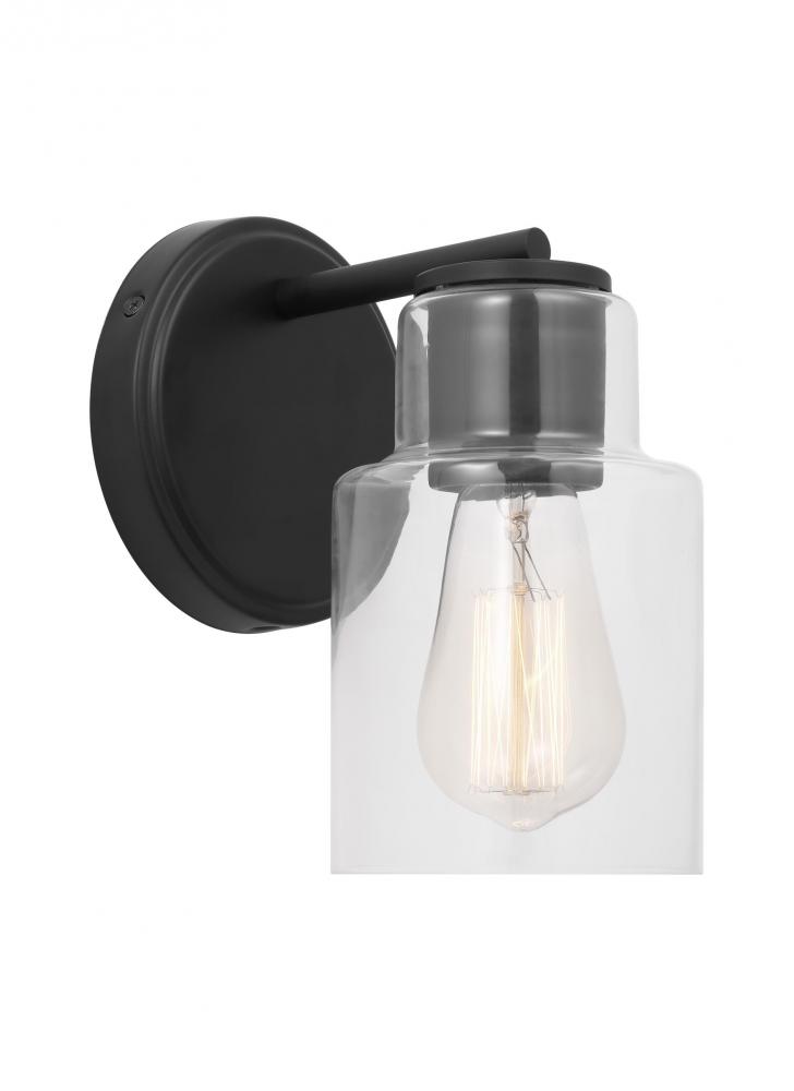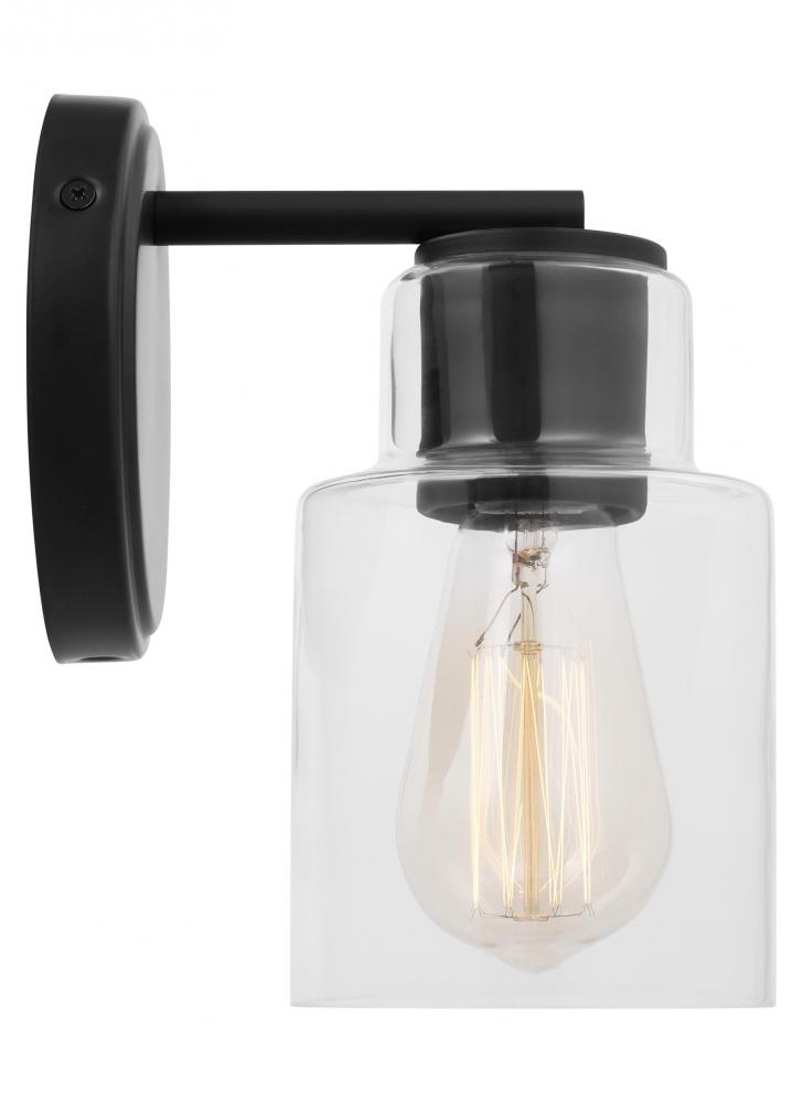 Add a bright burst of light where you need it most with the classic Drew & Jonathan Sayward Small Sconce, featuring a round metal backplate and clear glass shade. Made to coordinate across a broader range of bath hardware and design styles, the Sayward is available in four popular finishes, Brushed Steel, Chrome, Midnight Black, and Satin Brass. This light looks great on its own or installed above a bathroom vanity, and the glass shade makes it ideal for filament bulbs. This fixture may be mounted in the up or down position, and is cETL listed for damp locations, making it the perfect lighting solution for any space.