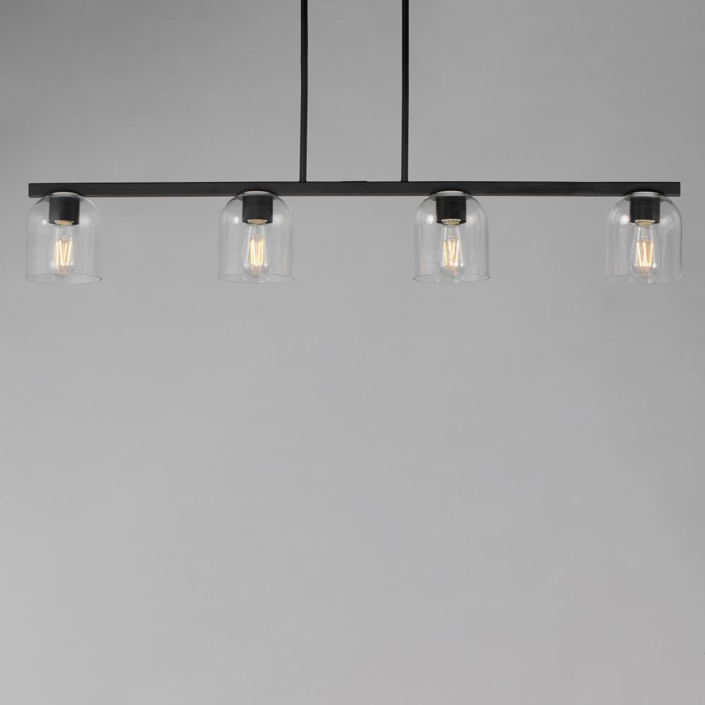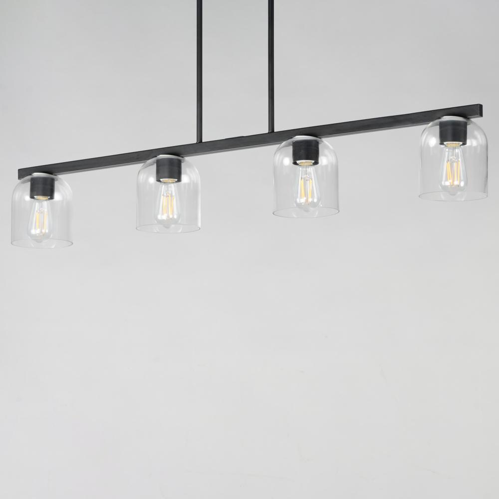 Cut-out metalwork curves around modern bell-shaped glass shades. The series includes pendants and bath vanities available in either Clear or a swirling Marble glass. Available in various complementary finishes: Polished Chrome, Matte Black, or Natural Aged