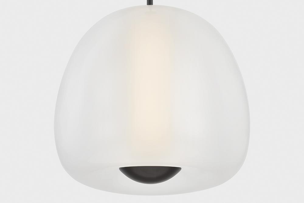 Inspired by the shape of an apple, Scranton features a softly defined outer layer of etched glass and a narrow ‘core’ of shiny opal glass within. The freshness of the organic silhouette, paired with the sleek glass layers and metal accents, makes it perfect for a dining room or kitchen. Scranton is available in two sizes and two finishes, Aged Brass and Old Bronze.