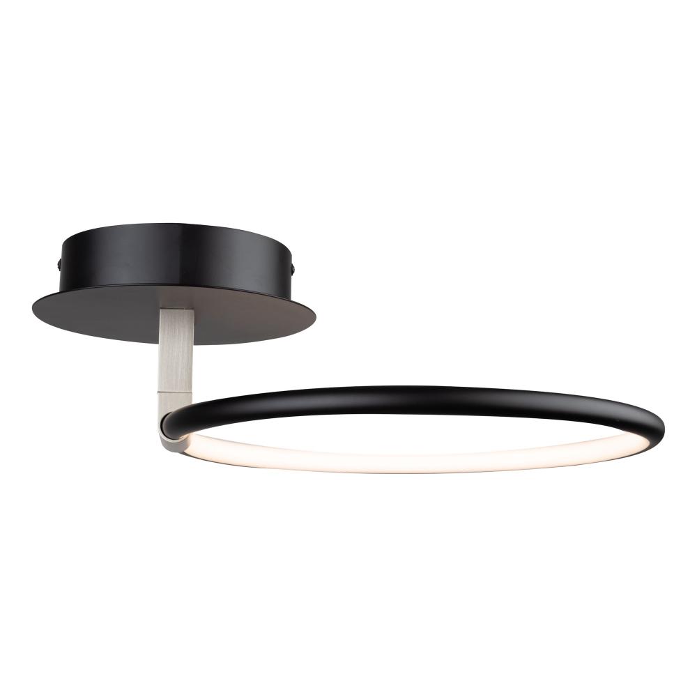 The Halo collection of semi flushmounts are all unique in their own ways. The main finish is black but has a brushed nickel holder which allows the user to rotate the LED illuminated ring. What a cool unit to place in any home.