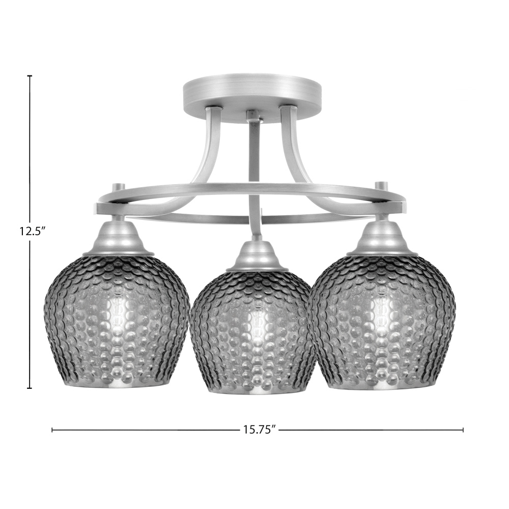 Paramount 3 Light Semi Flush Shown In Brushed Nickel Finish With 6 Smoke Textured Glass