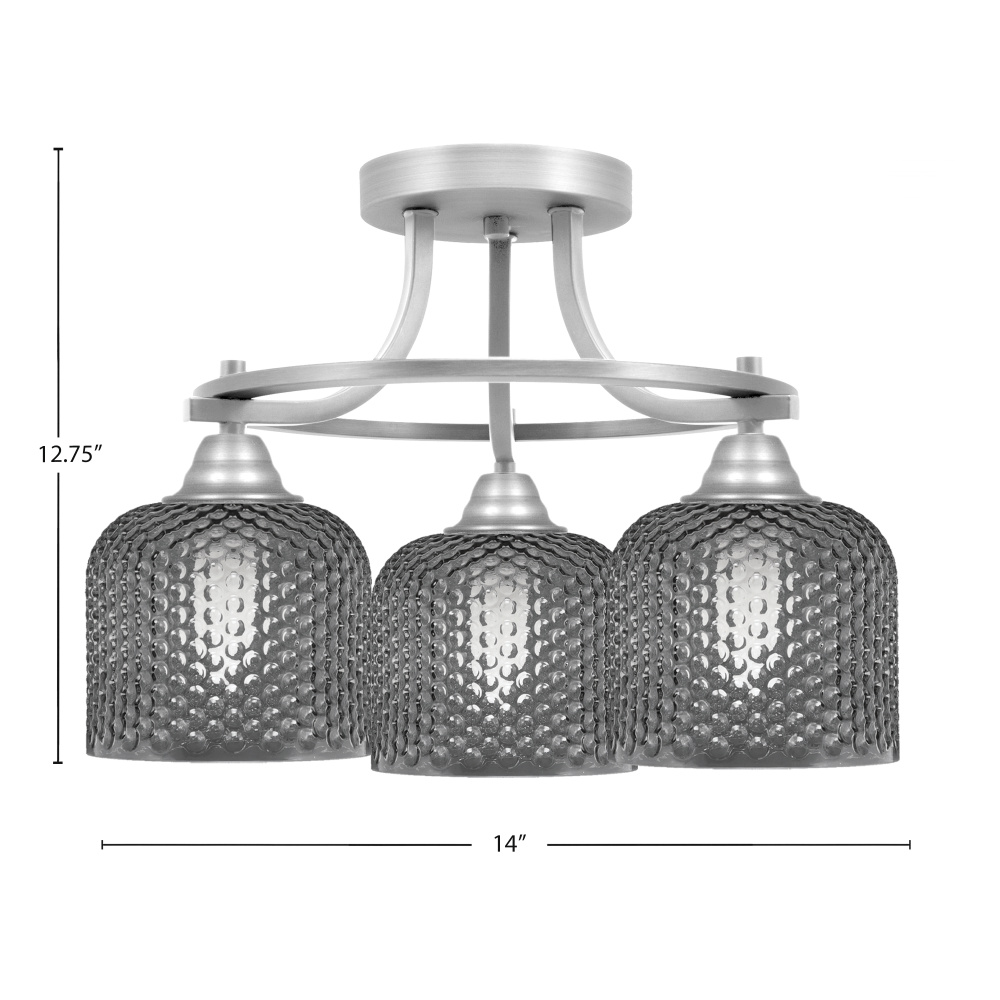 Paramount 3 Light Semi Flush Shown In Brushed Nickel Finish With 6 Smoke Textured Glass