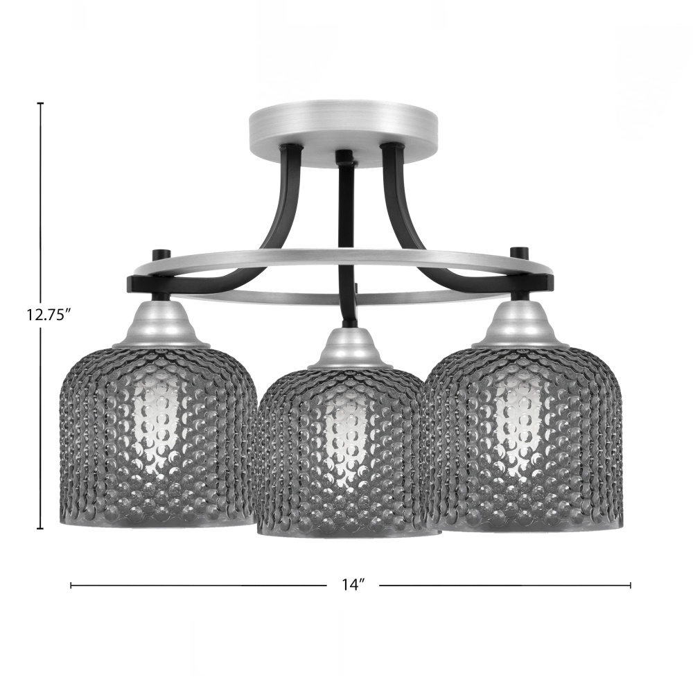 Paramount 3 Light Semi Flush Shown In Matte Black & Brushed Nickel Finish With 6 Smoke Textured Glass