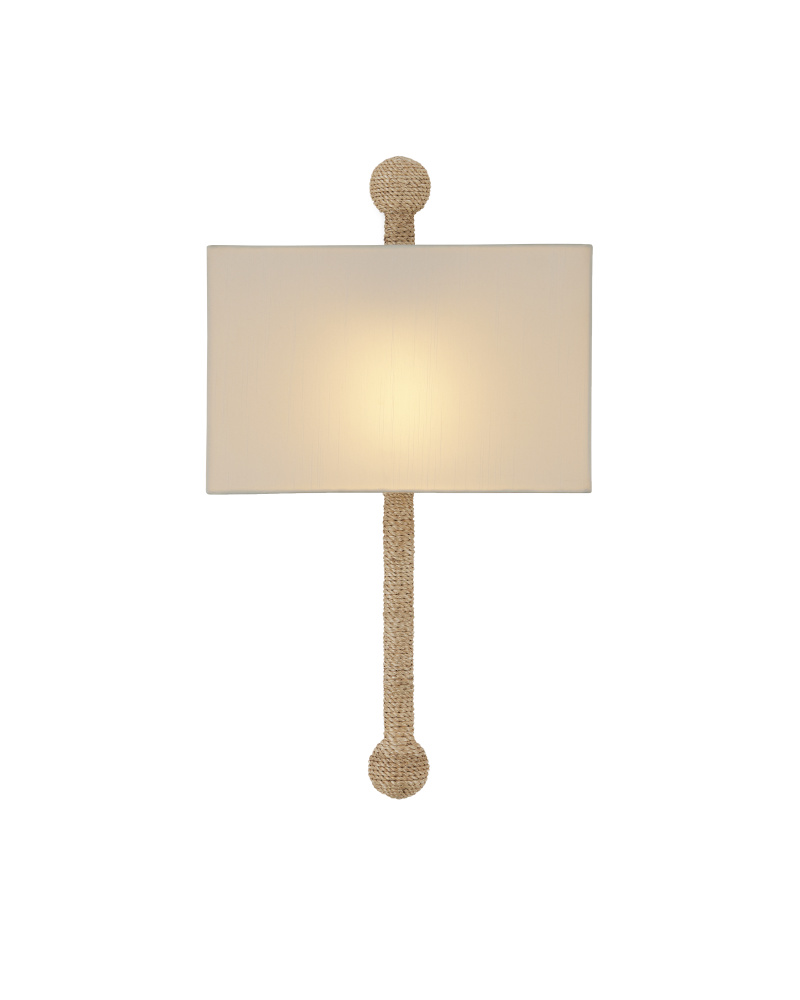 The Senegal Wall Sconce is so geometrically simple, it will make itself at home in a number of design styles, from contemporary to transitional and mid-century modern to traditional. Made of wrought iron that has been painstakingly wrapped in abaca rope, the baton-shaped stem balances an off-white shantung shade at the perfect spot to create a wonderful symmetry. The shade is narrow enough that this rope wall sconce is ADA compliant.